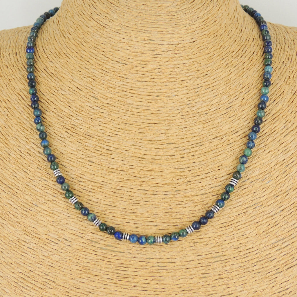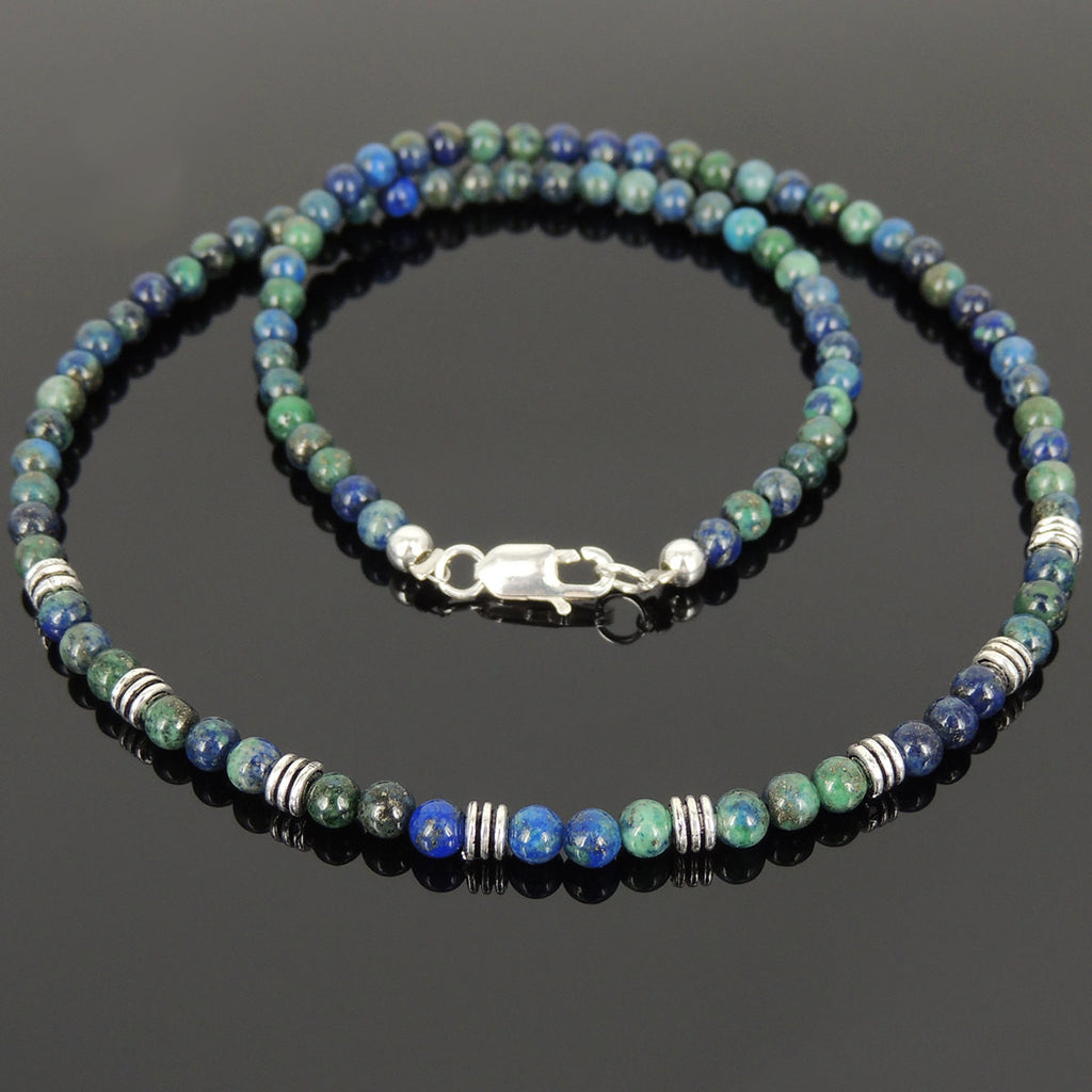 Men's Women Mixed Chrysocolla Lapis Sterling Silver Necklace Gemstone Spacers Clasp DiyNoion Handmade NK105