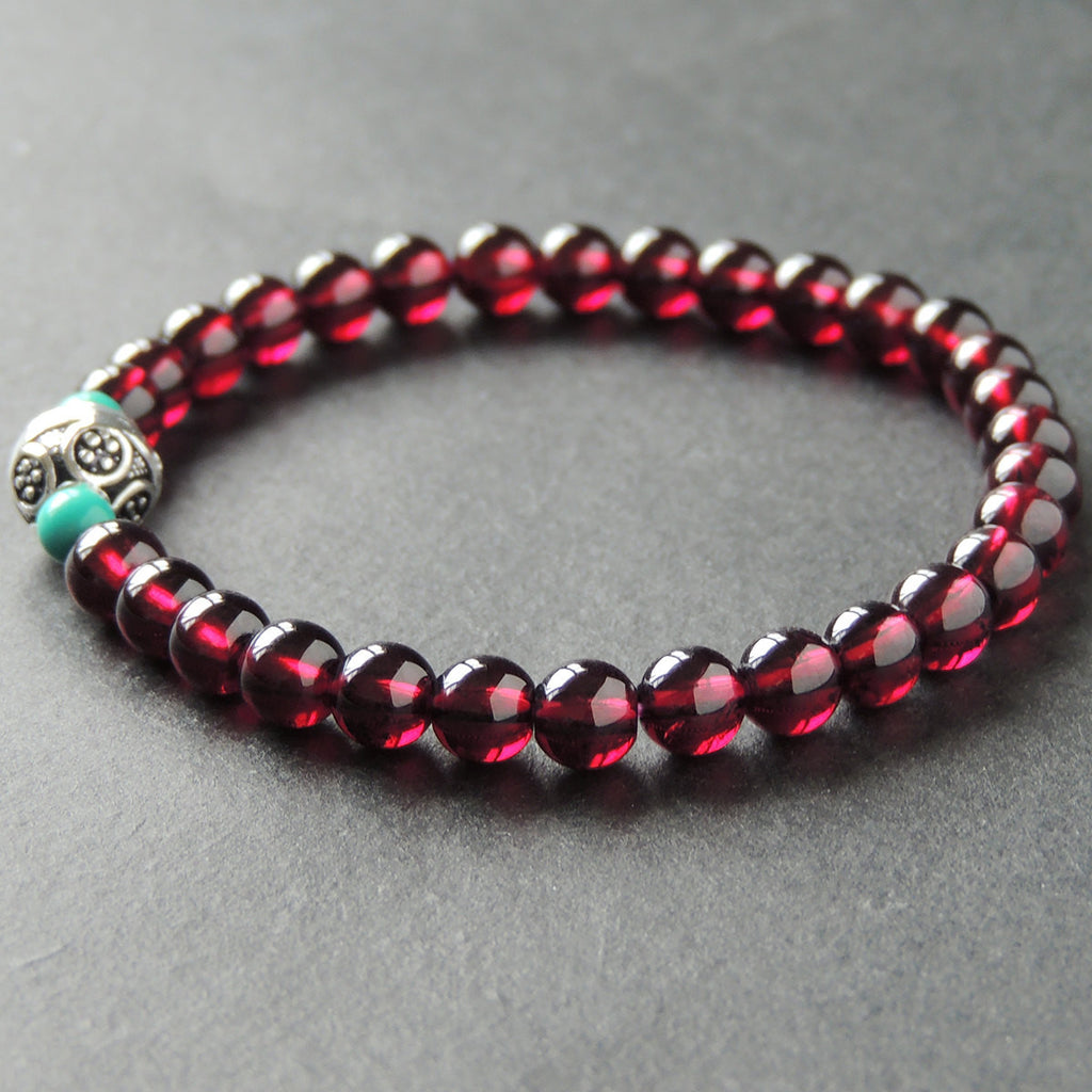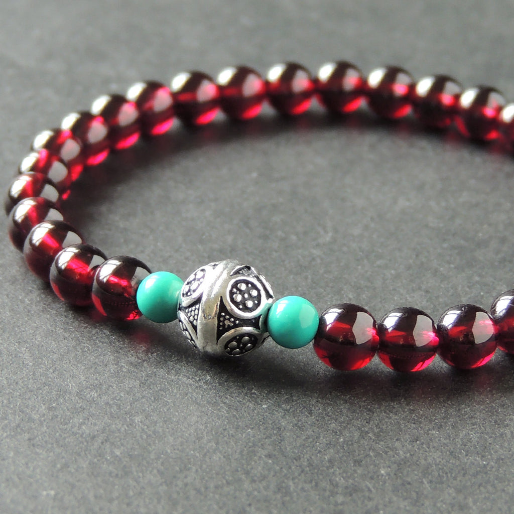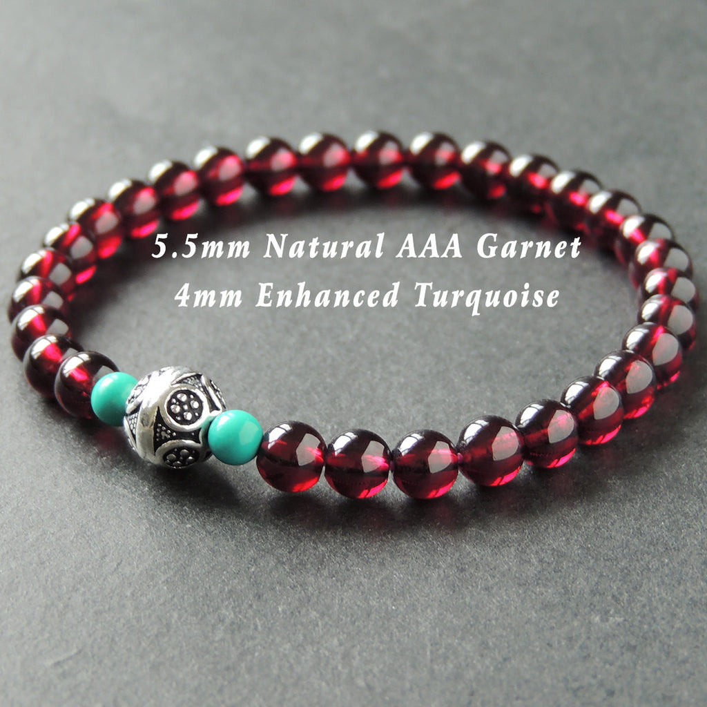 Men's Women Natural AAA Garnet Turquoise Sterling Silver Bracelet with Vintage Bead DiyNotion BR010