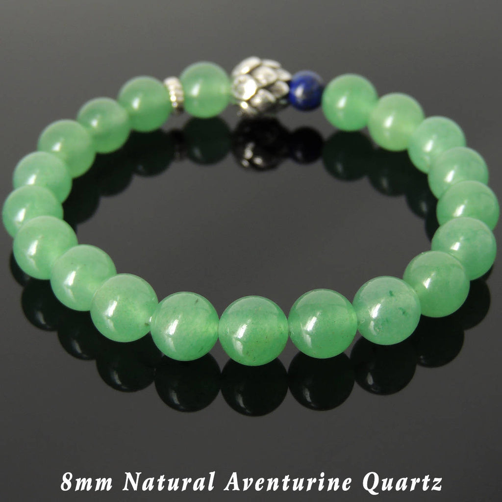 Men's Women Natural Aventurine Quartz Lapis Lazuli Bracelet 925 Sterling Silver Lotus Bead DiyNotion BR1134