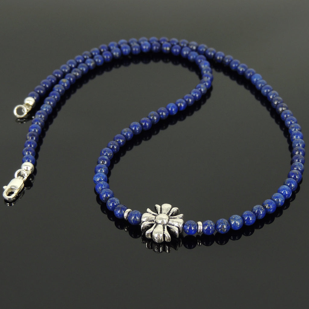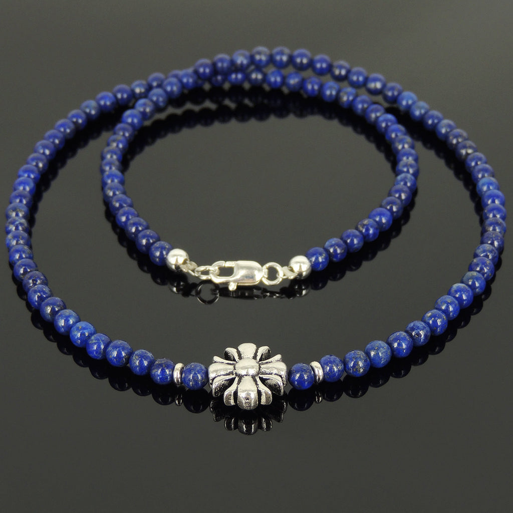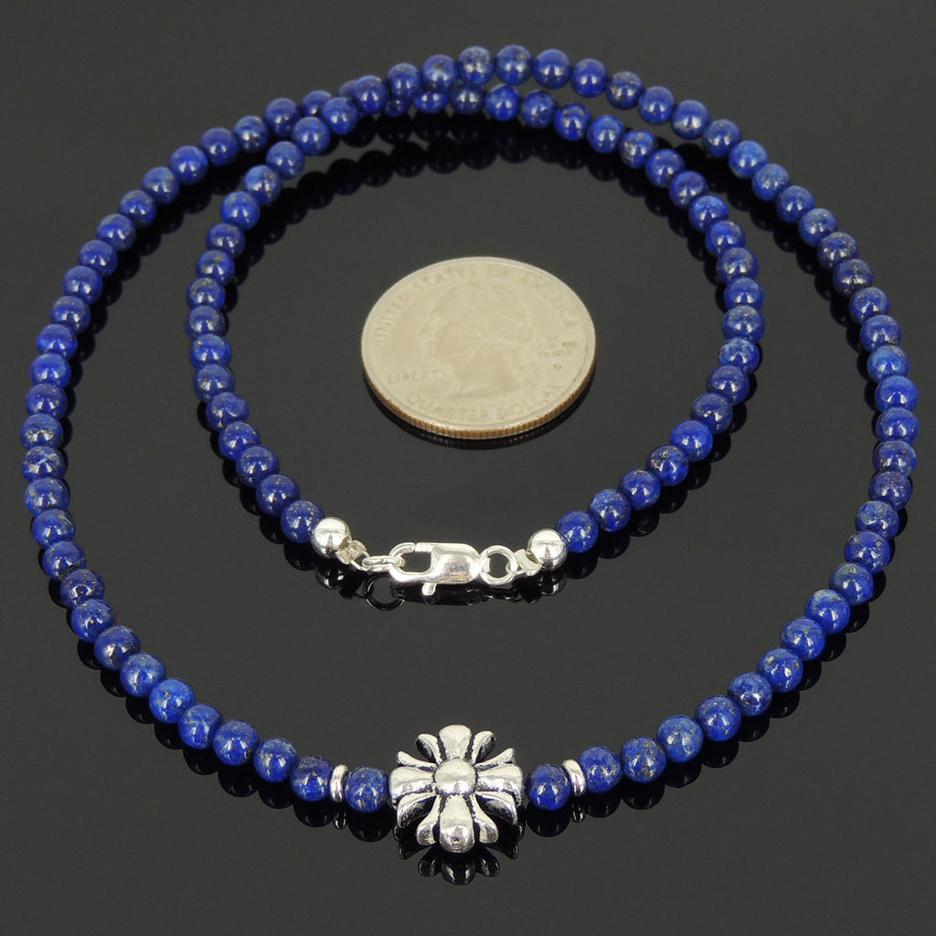 Men's Women Natural Lapis Sterling Silver Necklace Gemstone Cross Charm DiyNoion Handmade NK074