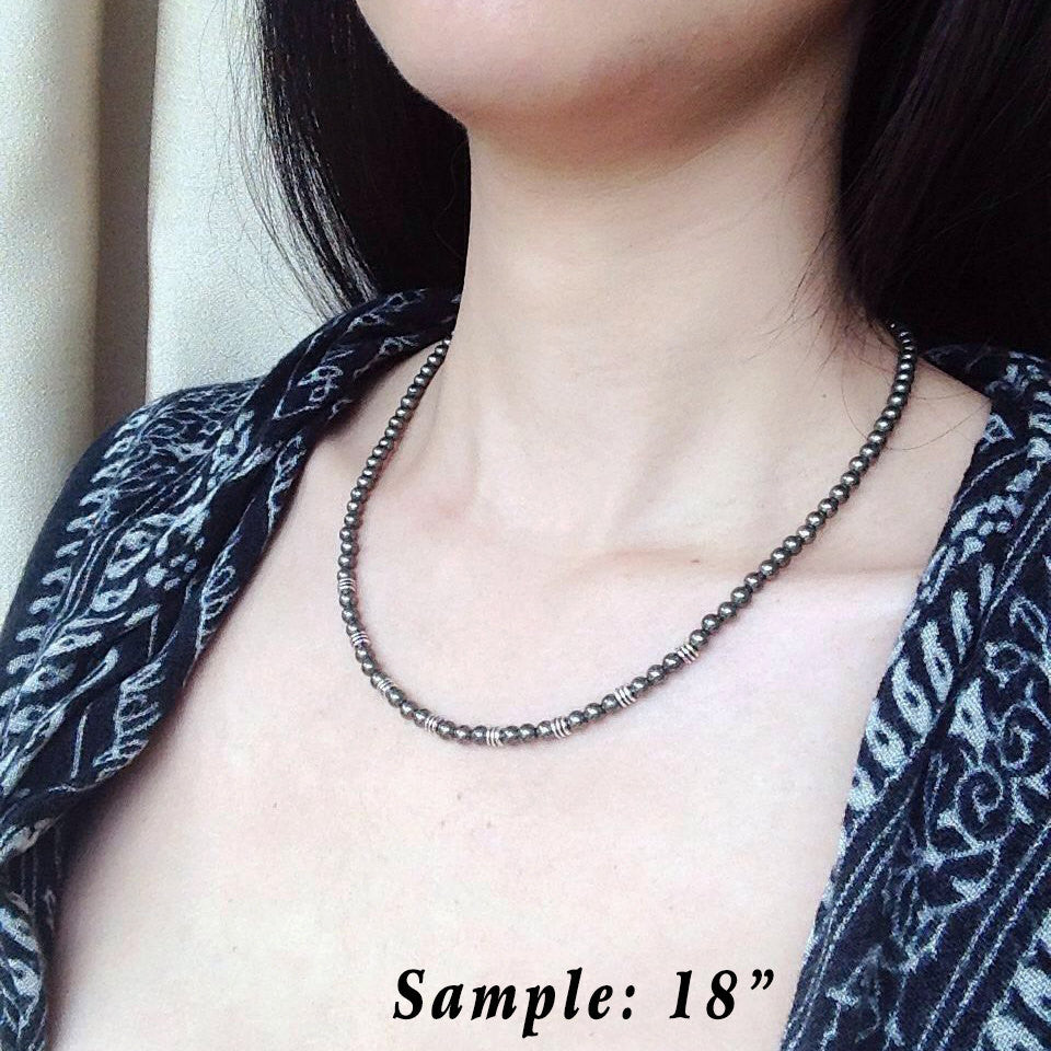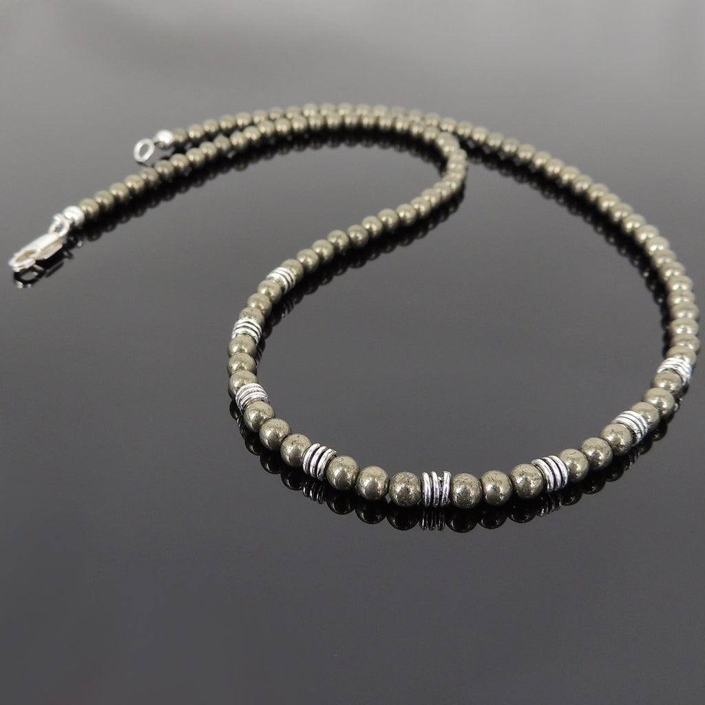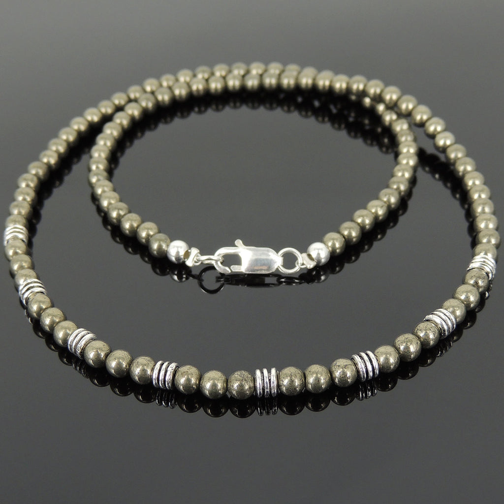Men's Women Natural Pyrite Sterling Silver Necklace Gemstone 925 Beads Clasp DiyNoion Handmade NK107