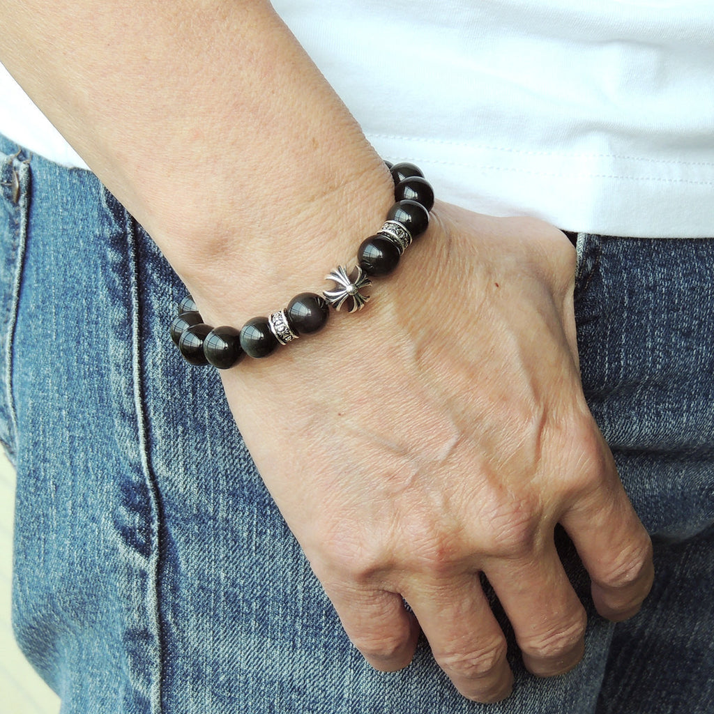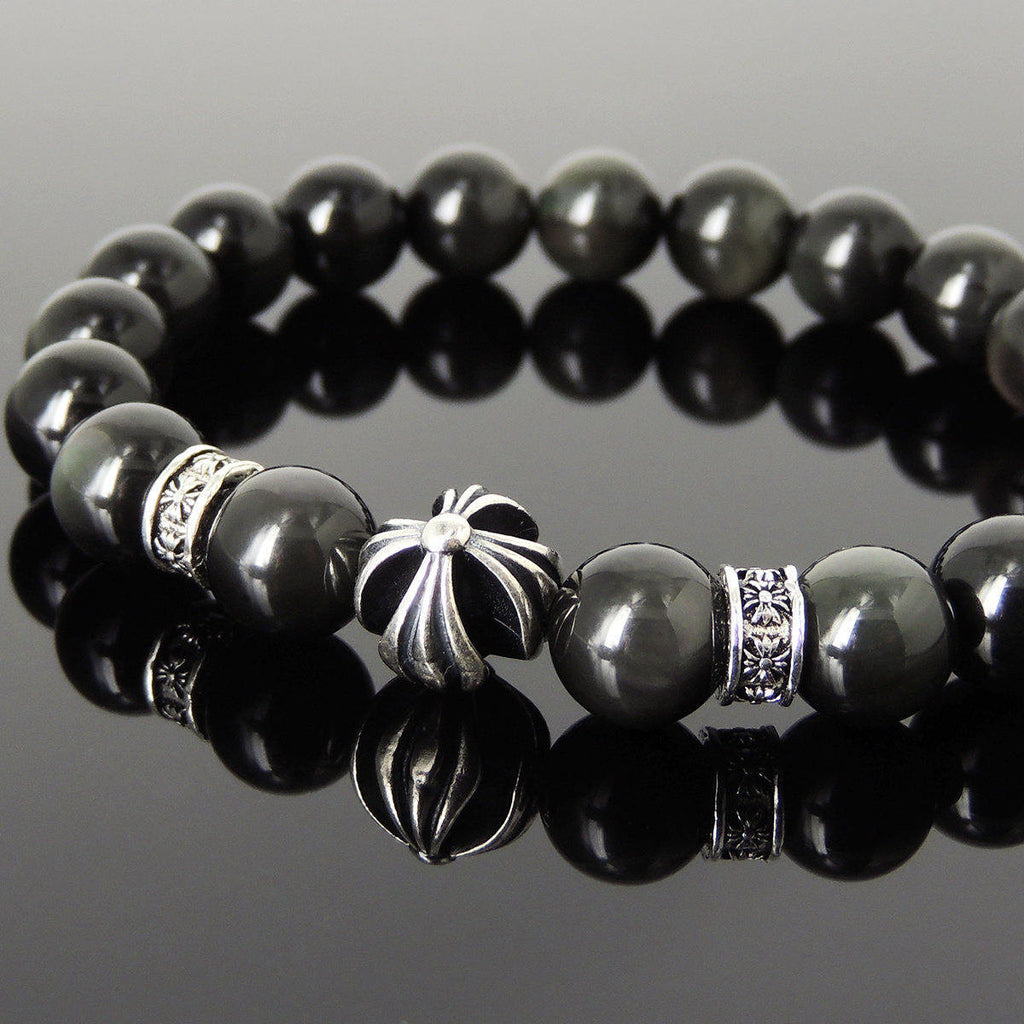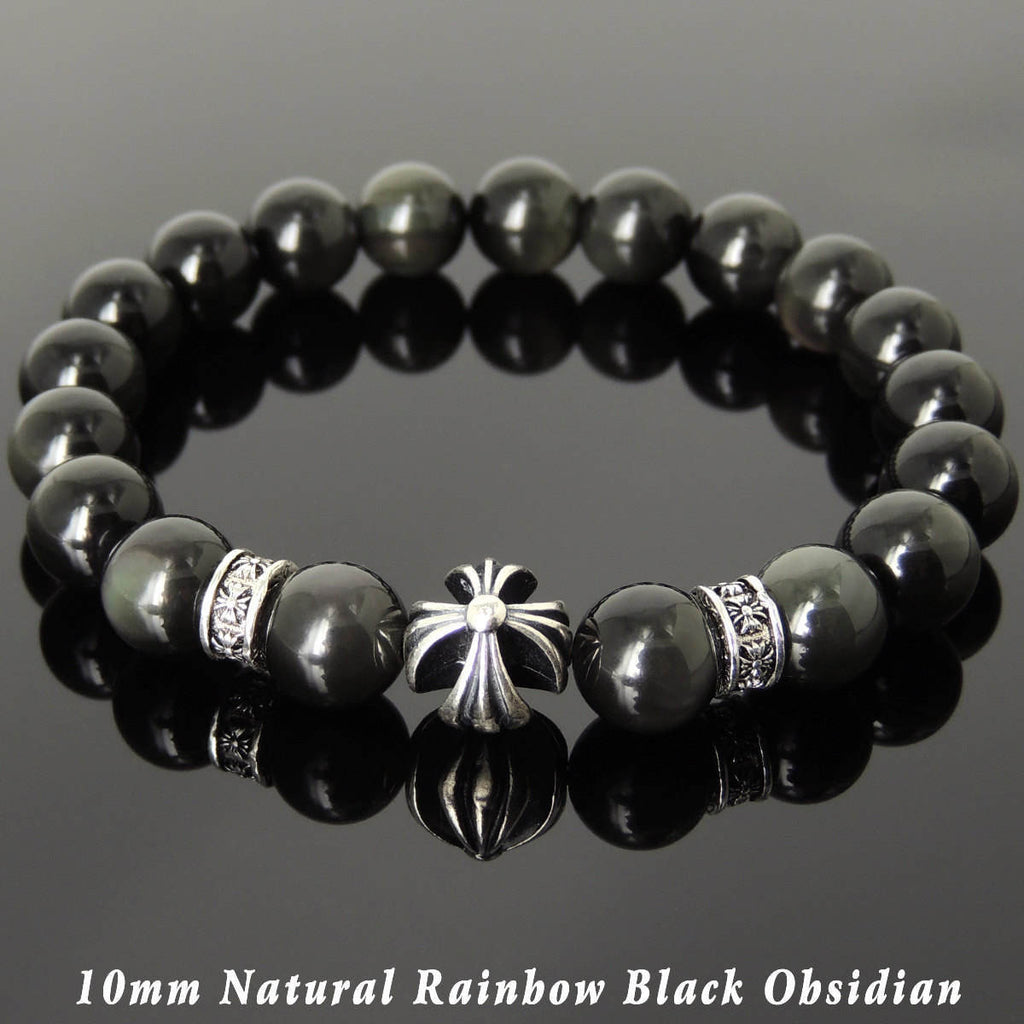 Materials: Healing Stone,Gemstone,Rainbow Black Obsidian,925 Sterling Silver,Elastic Cords