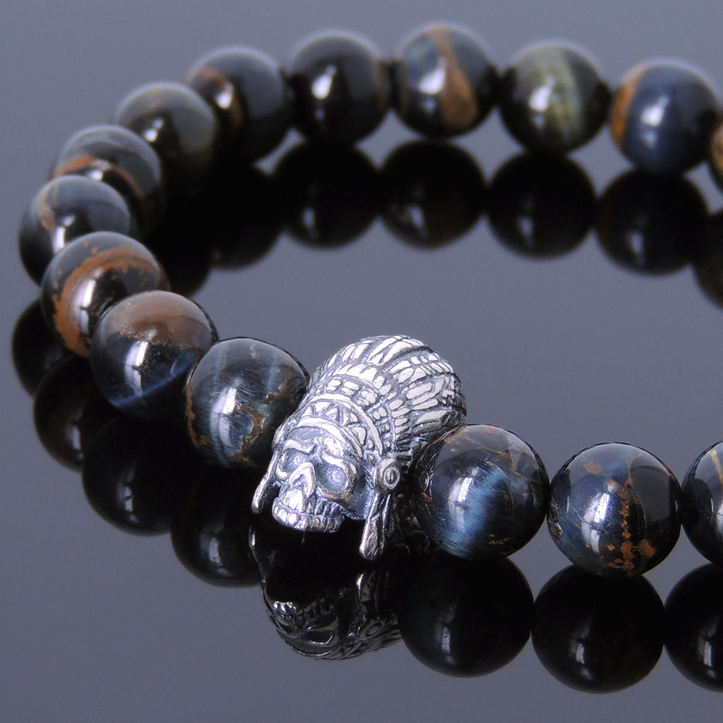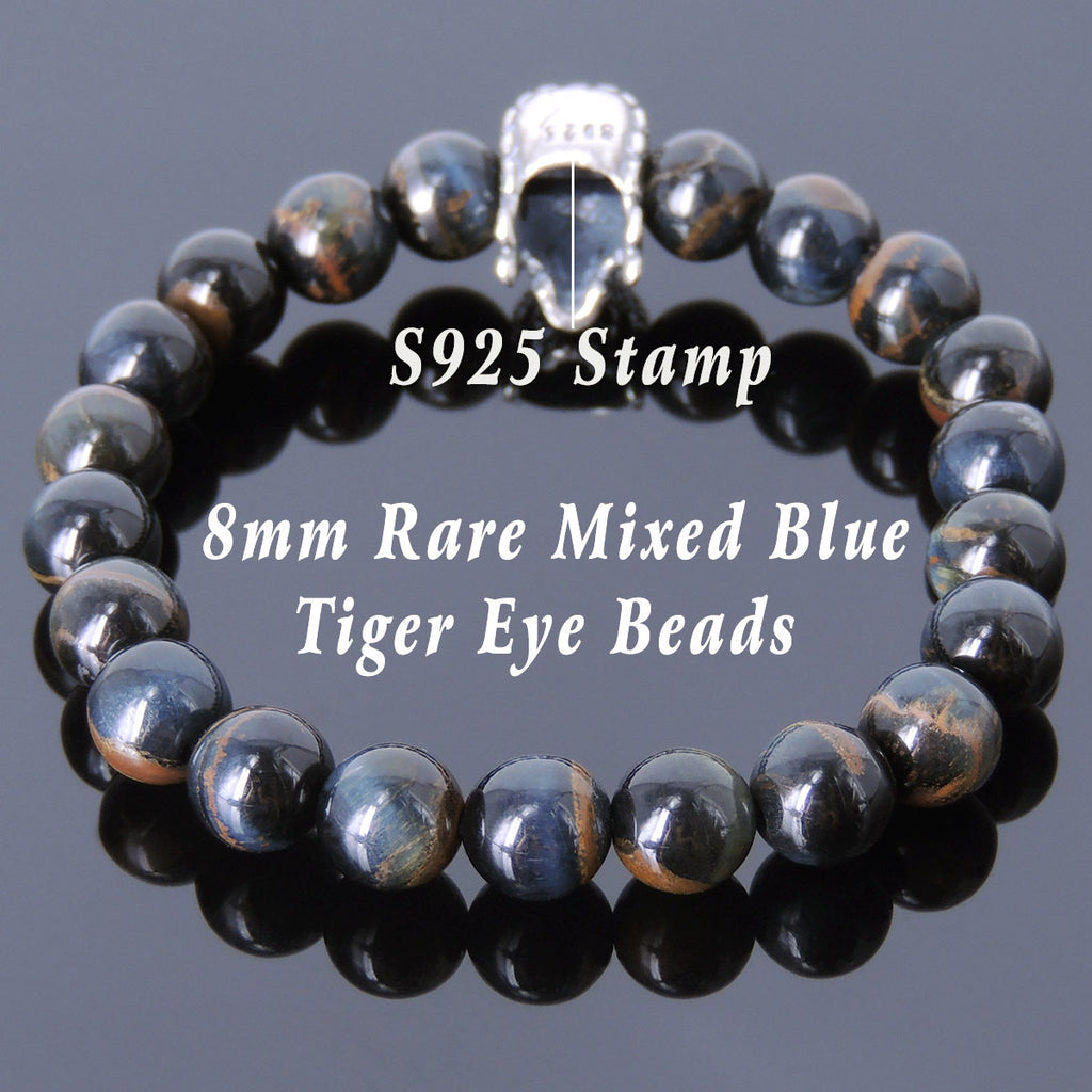 Materials: Gemstone,Mixed Blue Tiger Eye,925 Sterling Silver,Elastic Cords