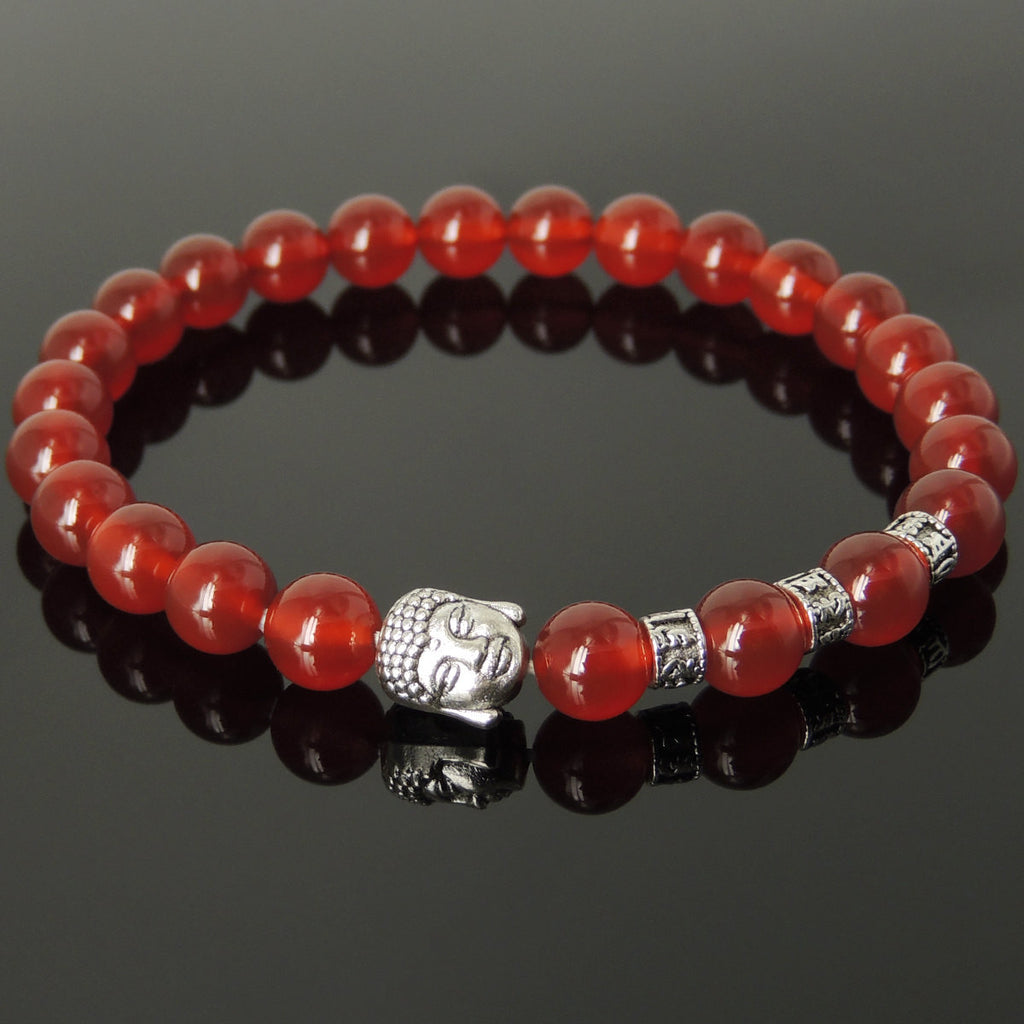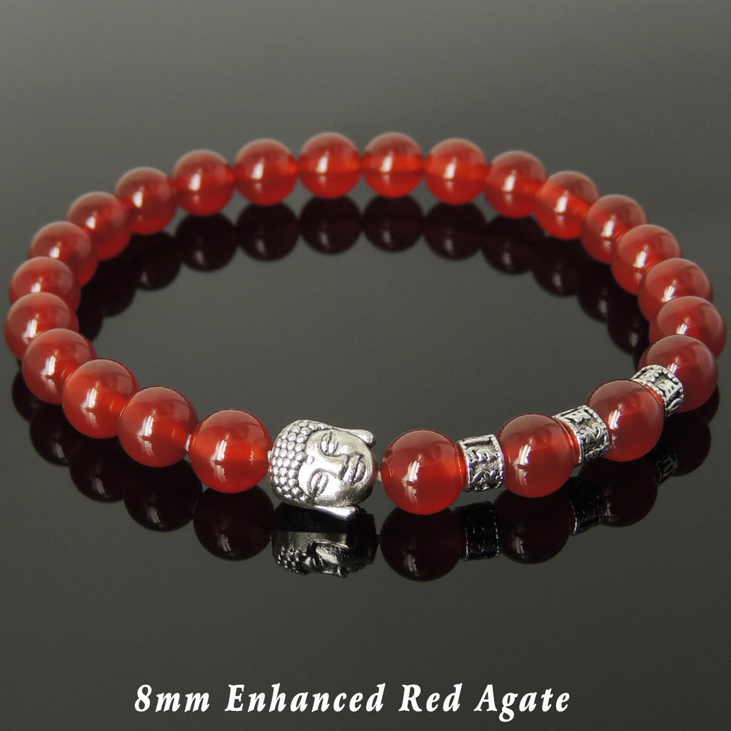 Men's Women Red Agate Tibetan Silver Bracelet with Buddha Head Bead OM Spacers DiyNotion Handmade T328