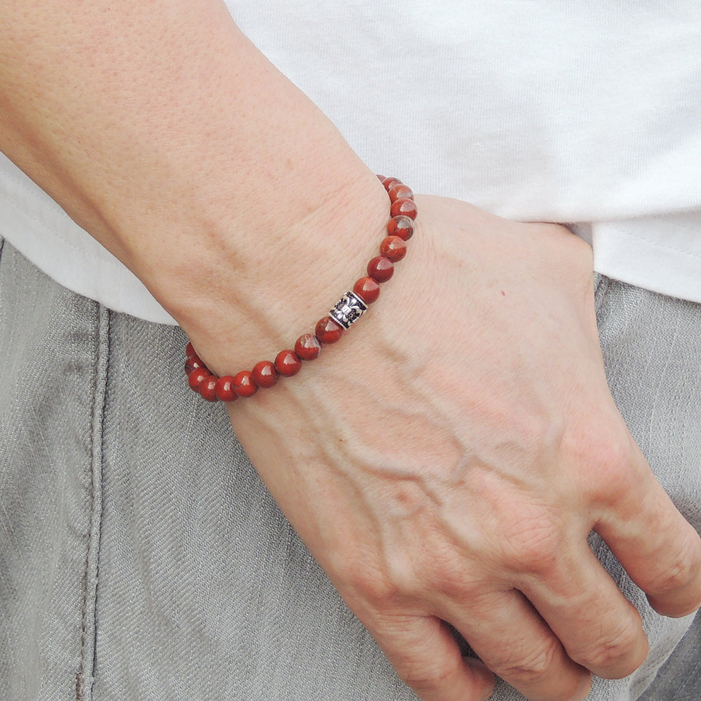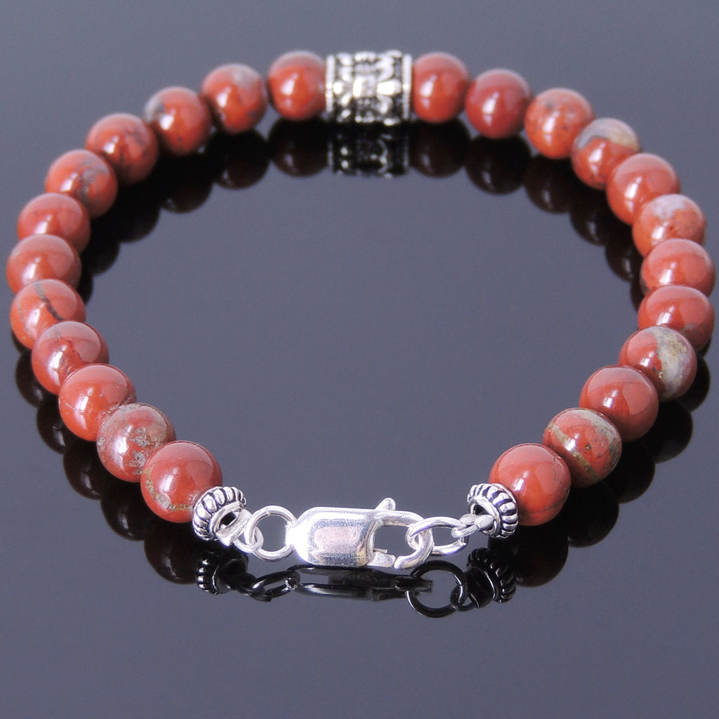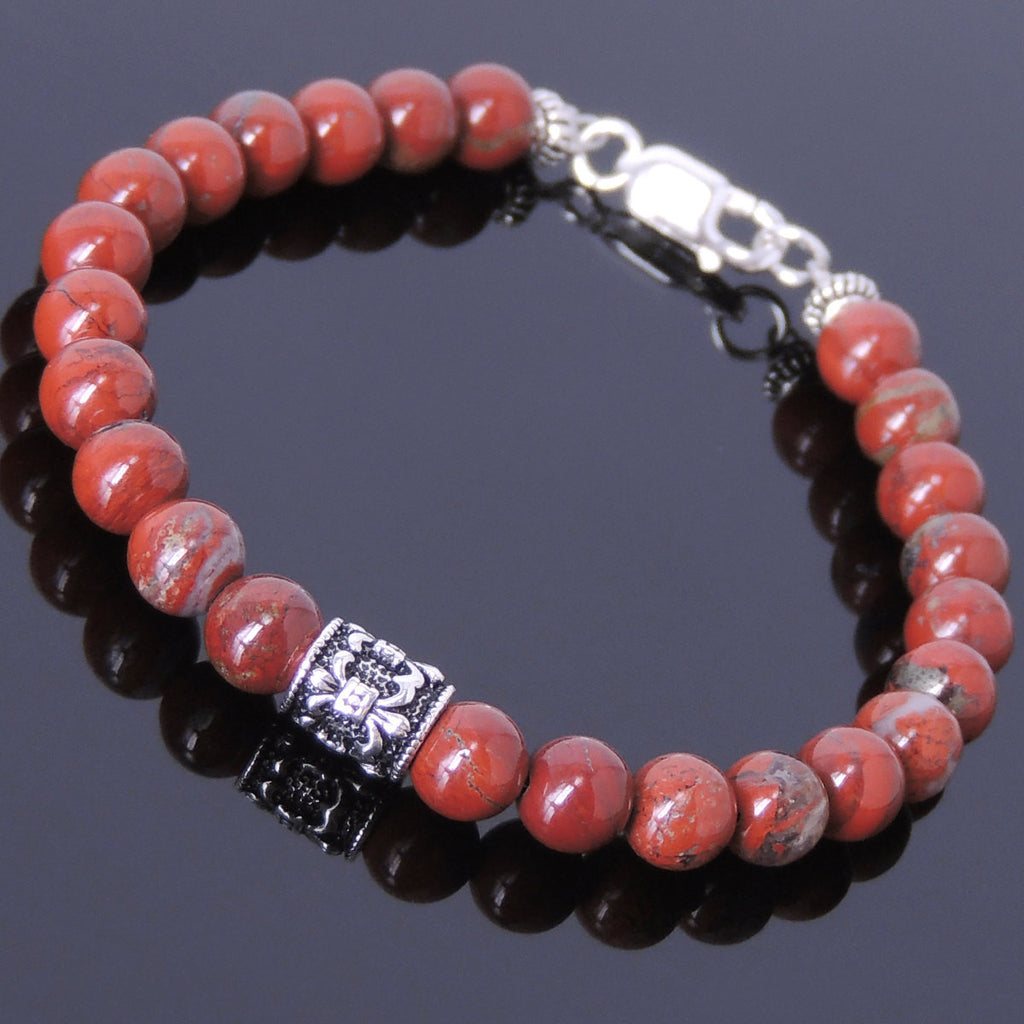 Men's Women Red Japser Stone Sterling Silver Bracelet 925 Fleur de Lis Bead DiyNotion Handmade BR463