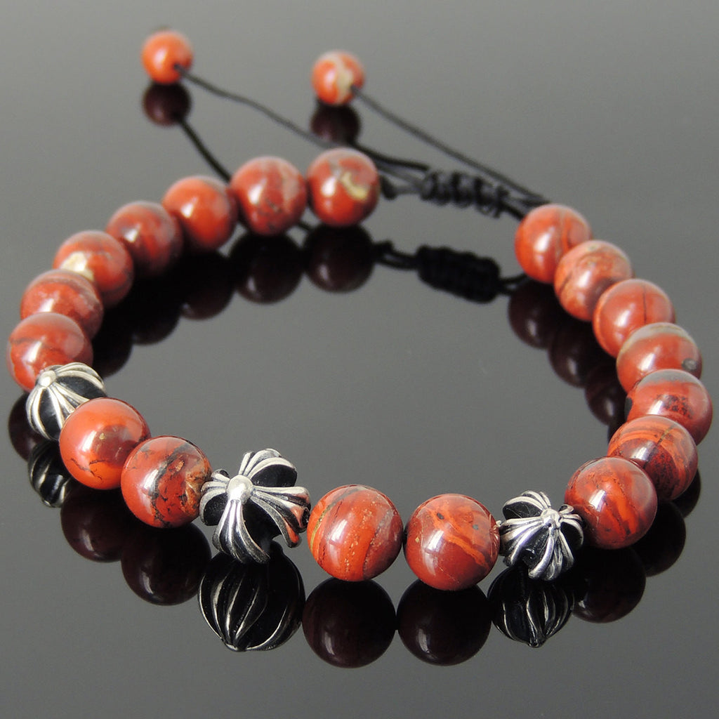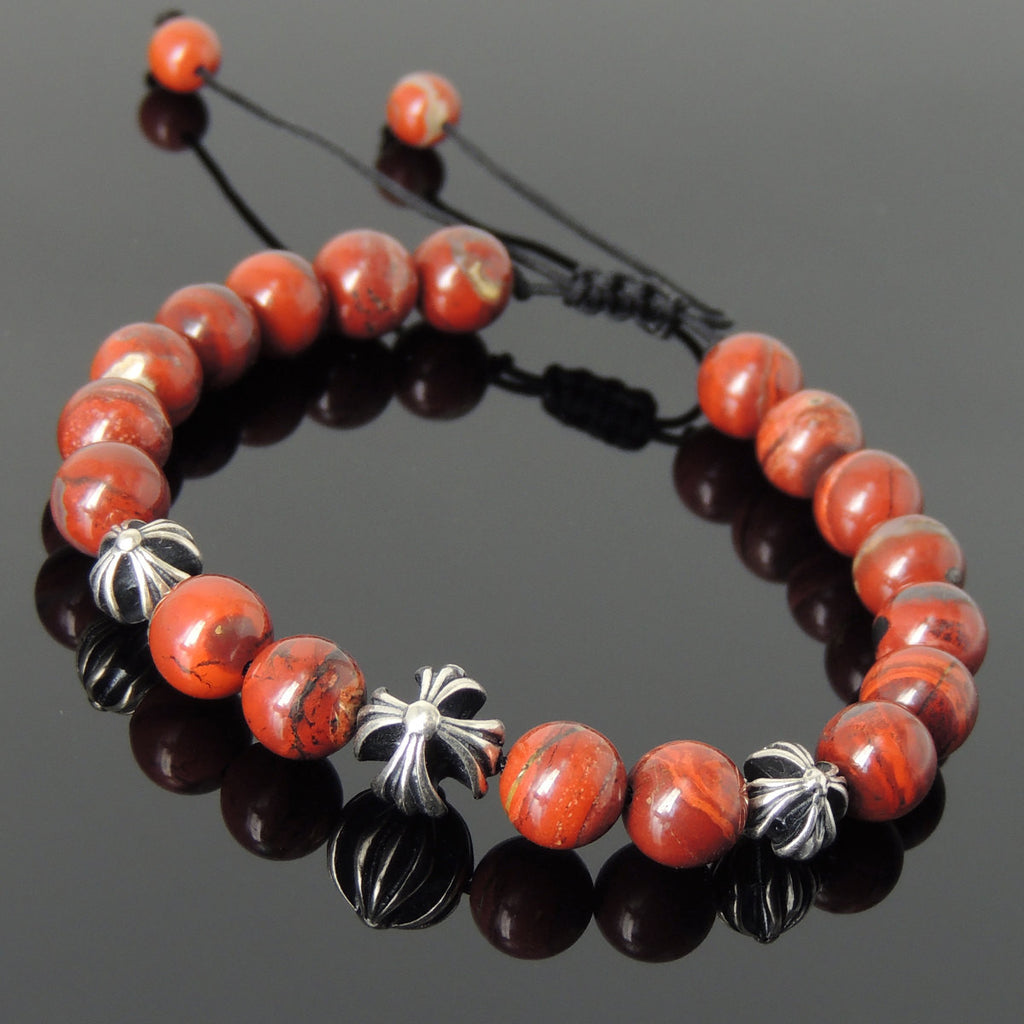 Men's Women Red Jasper Stone Adjustable Braided Bracelet 925 Sterling Silver Cross Beads DiyNotion BR842