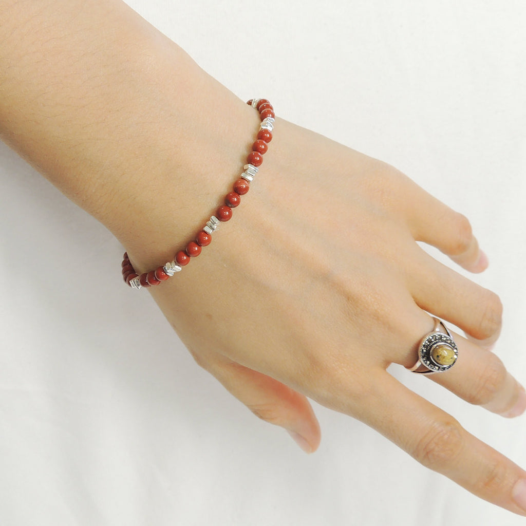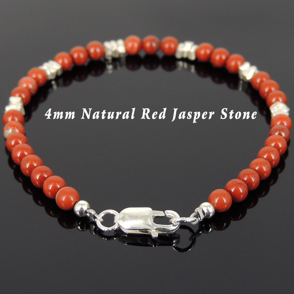 Men's Women Red Jasper Stone Sterling Silver Bracelet Natural Gemstone DiyNotion Handmade BR960