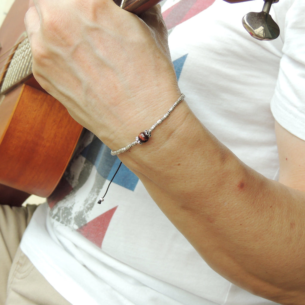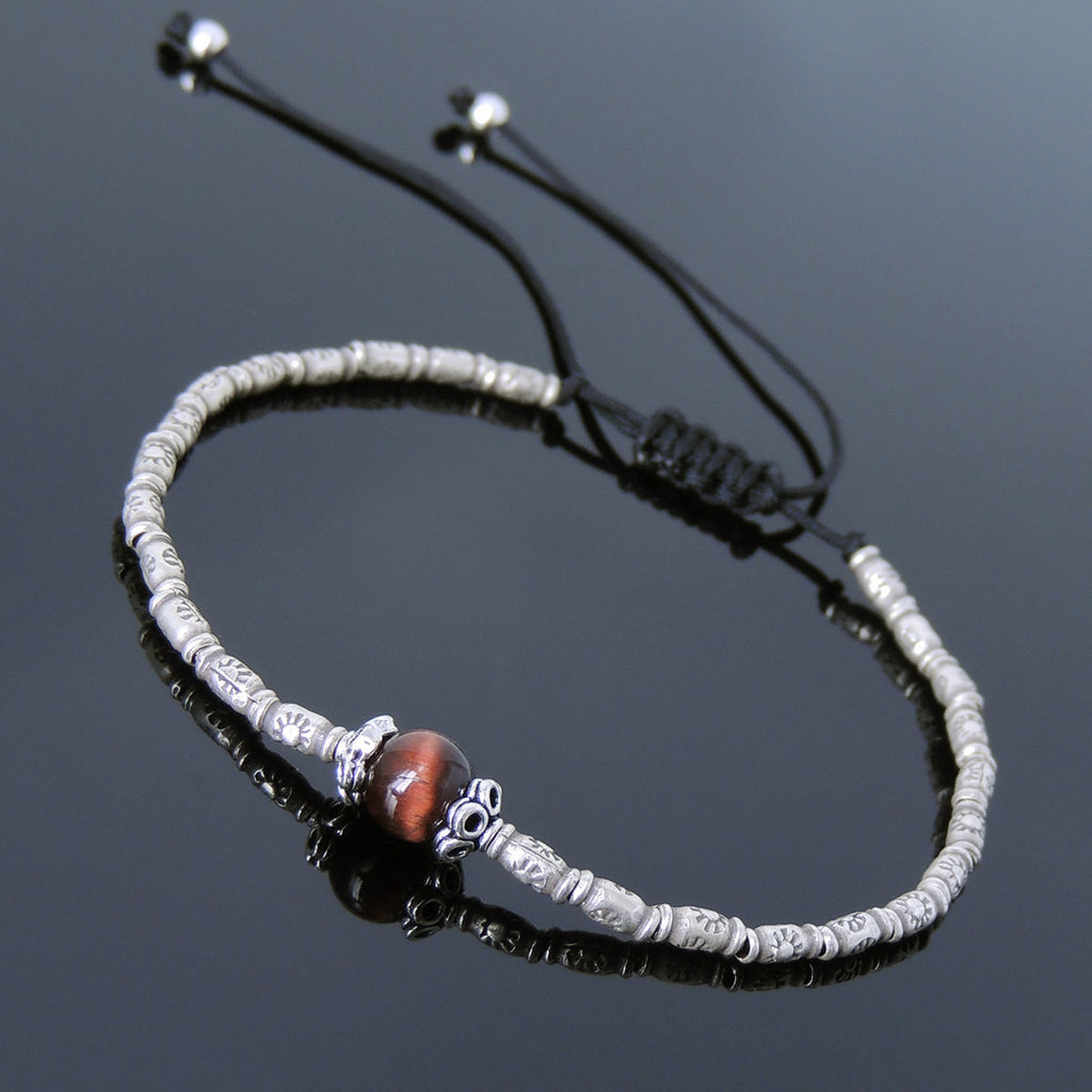 Men's Women Red Tiger Eye Adjustable Braided Bracelet 925 Sterling Silver Handmade BeadsDiyNotion BR829