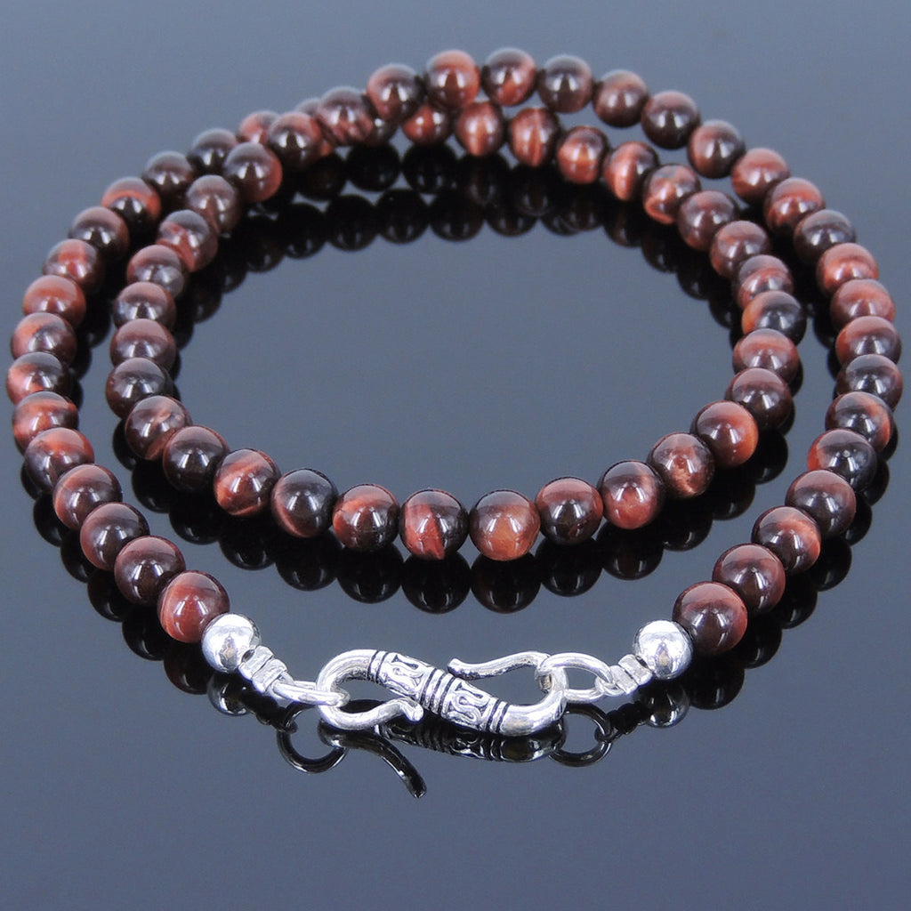 Men's Women Red Tiger Eye Sterling Silver Necklace Gemstone 925 Beads Clasp DiyNoion Handmade NK036