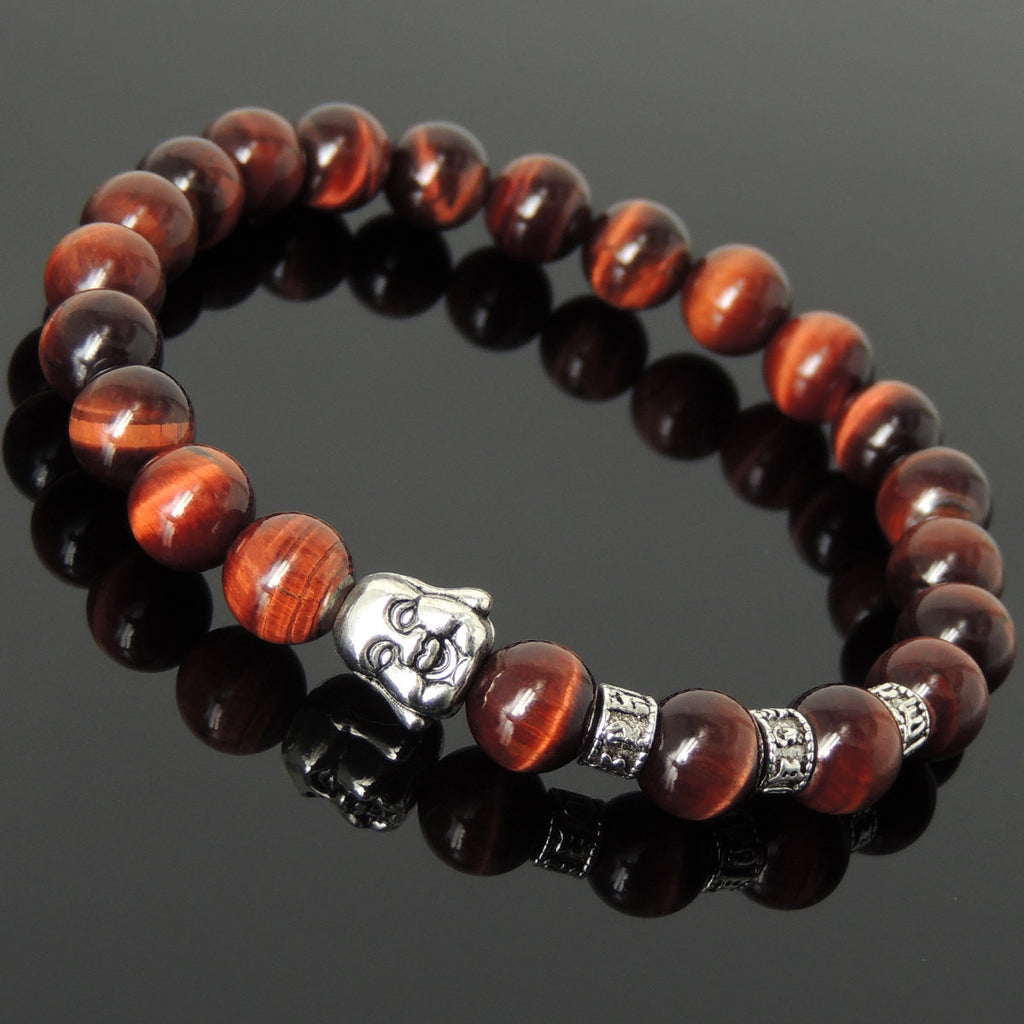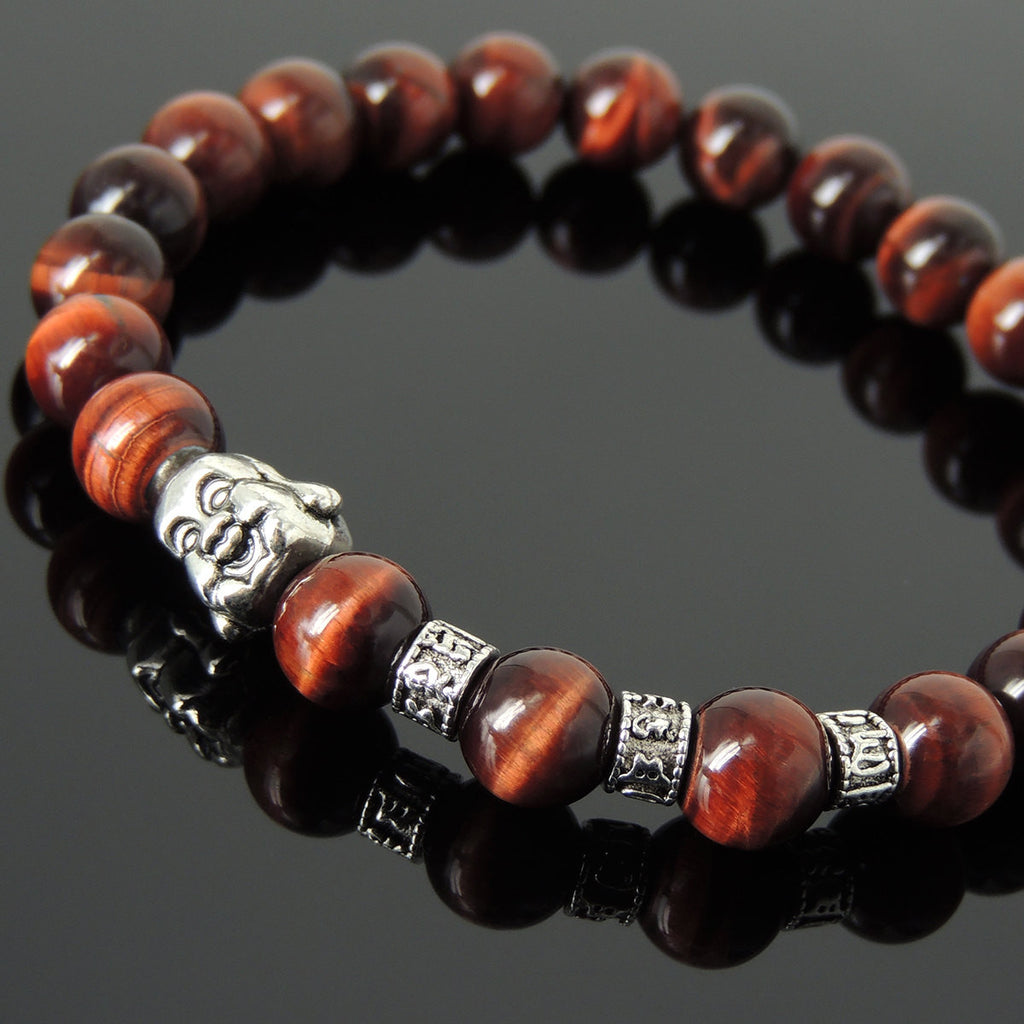 Men's Women Red Tiger Eye Tibetan Silver Bracelet with Smiling Buddha Bead OM Spacers DiyNotion Handmade T338