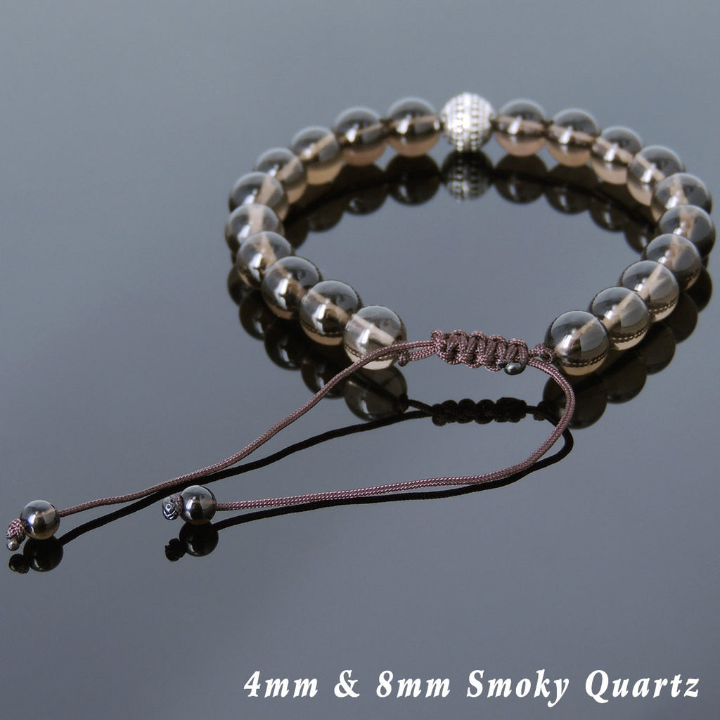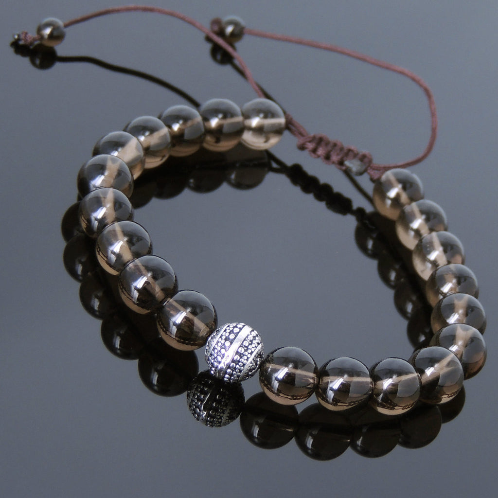 Men's Women Smoky Quartz Adjustable Braided Bracelet 925 Sterling Silver Cube Bead DiyNotion BR827