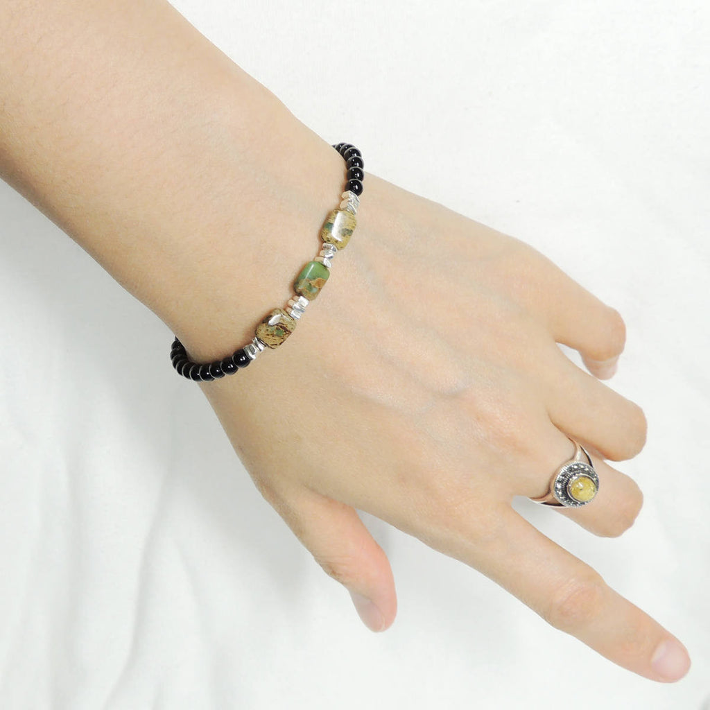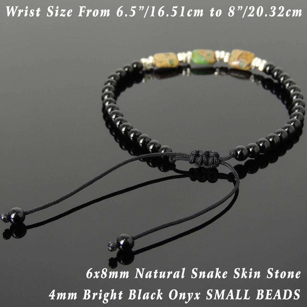 Materials: Gemstone,Snake Skin Stone,Bright Black Onyx Small Beads,925 Sterling Silver,Chinese Strong Braided Cords