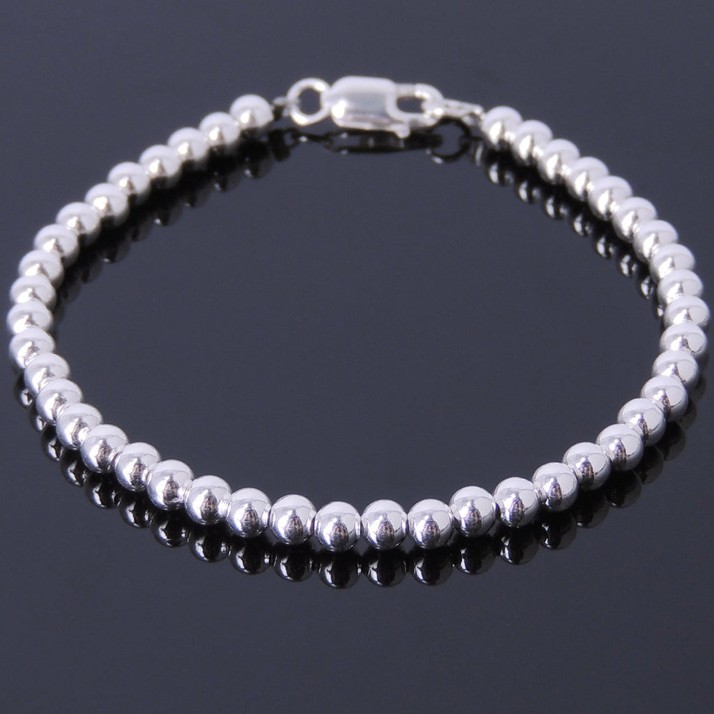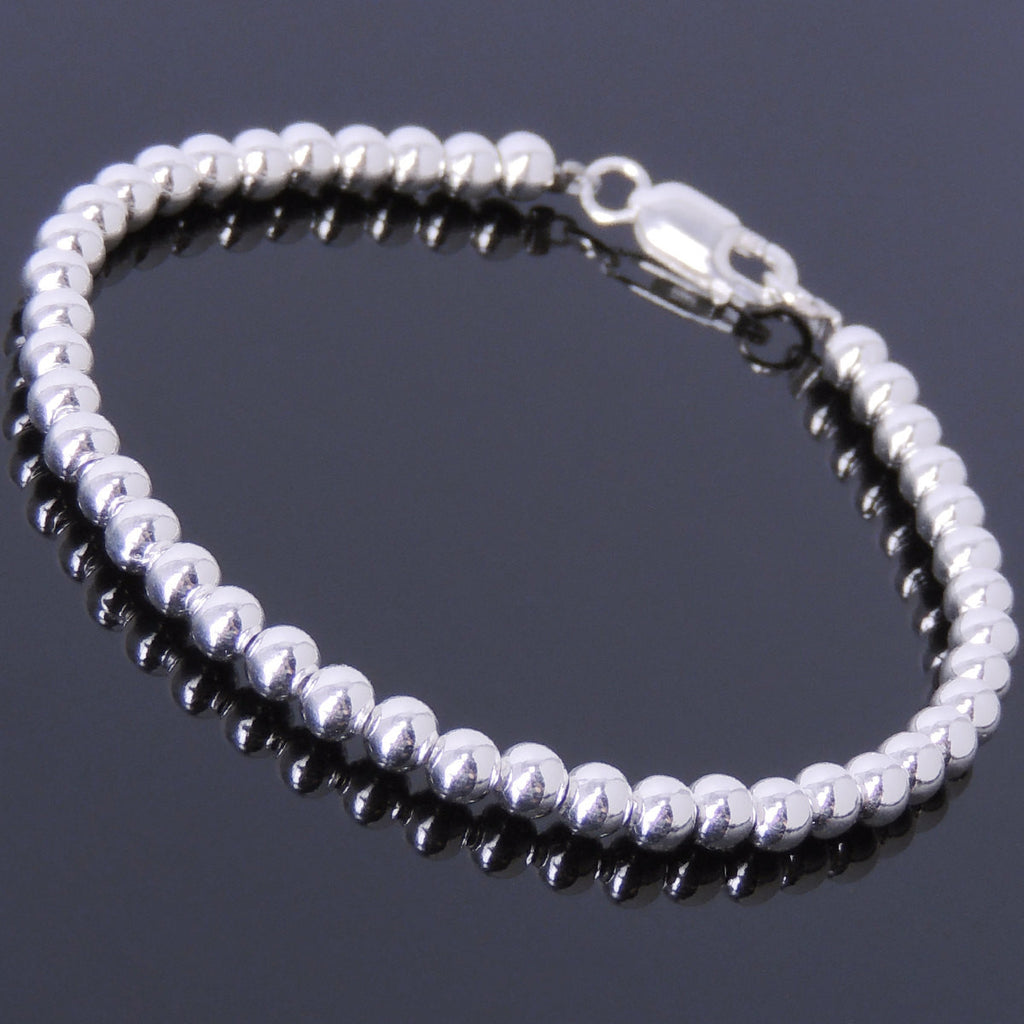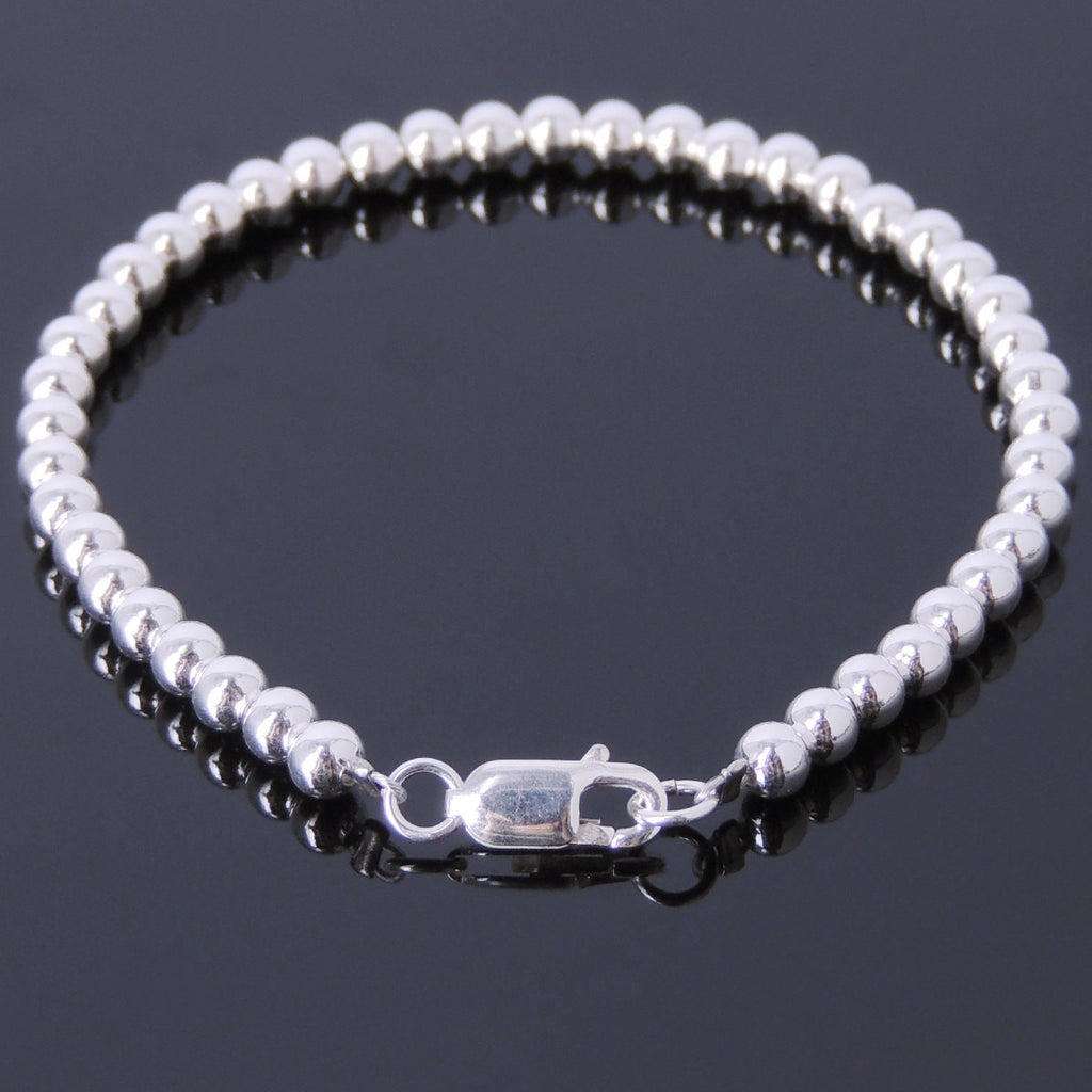 Men's Women Sterling Silver Bracelet 925 Round Bead & Clasp DiyNotion Handmade BR489