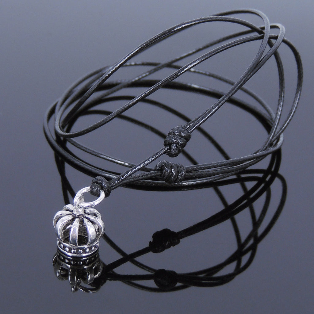Men's Women Sterling Silver Necklace 925 Crown Adjustable Wax Rope DiyNotion Handmade NK046
