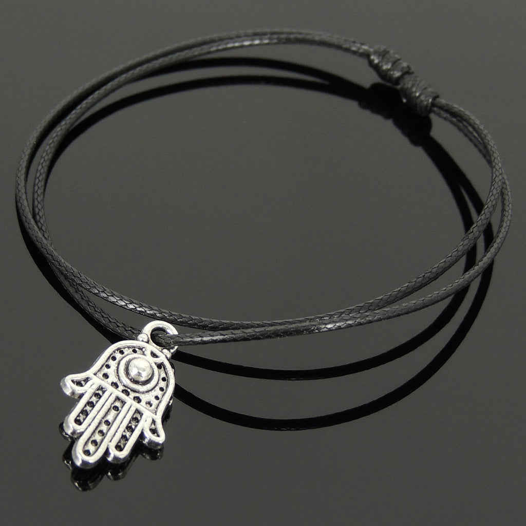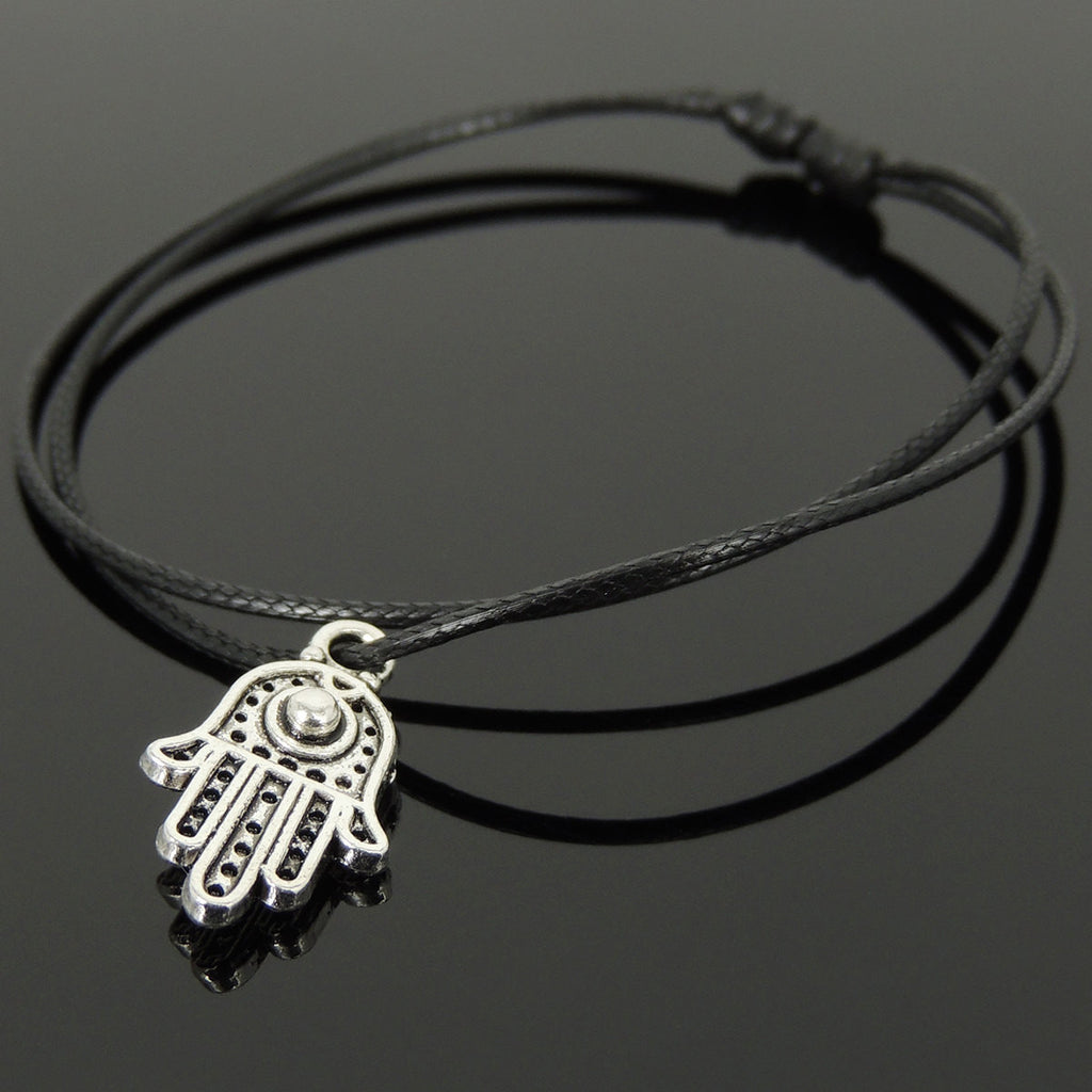 Men's Women Tibetan Silver Adjustable Braided Bracelet with Hamsa Hand Pendant DiyNotion TSB301