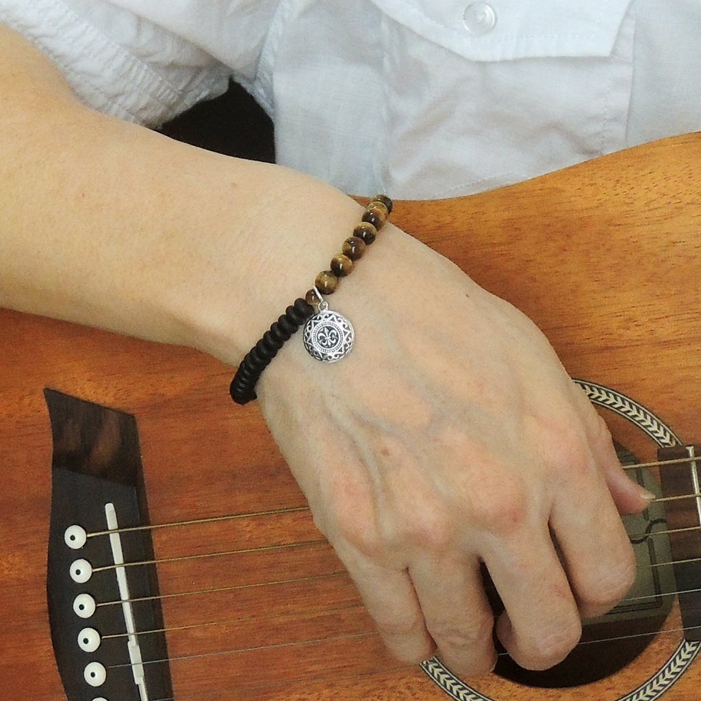 6mm Brown Tiger Eye & 3x6mm Matte Black Onyx