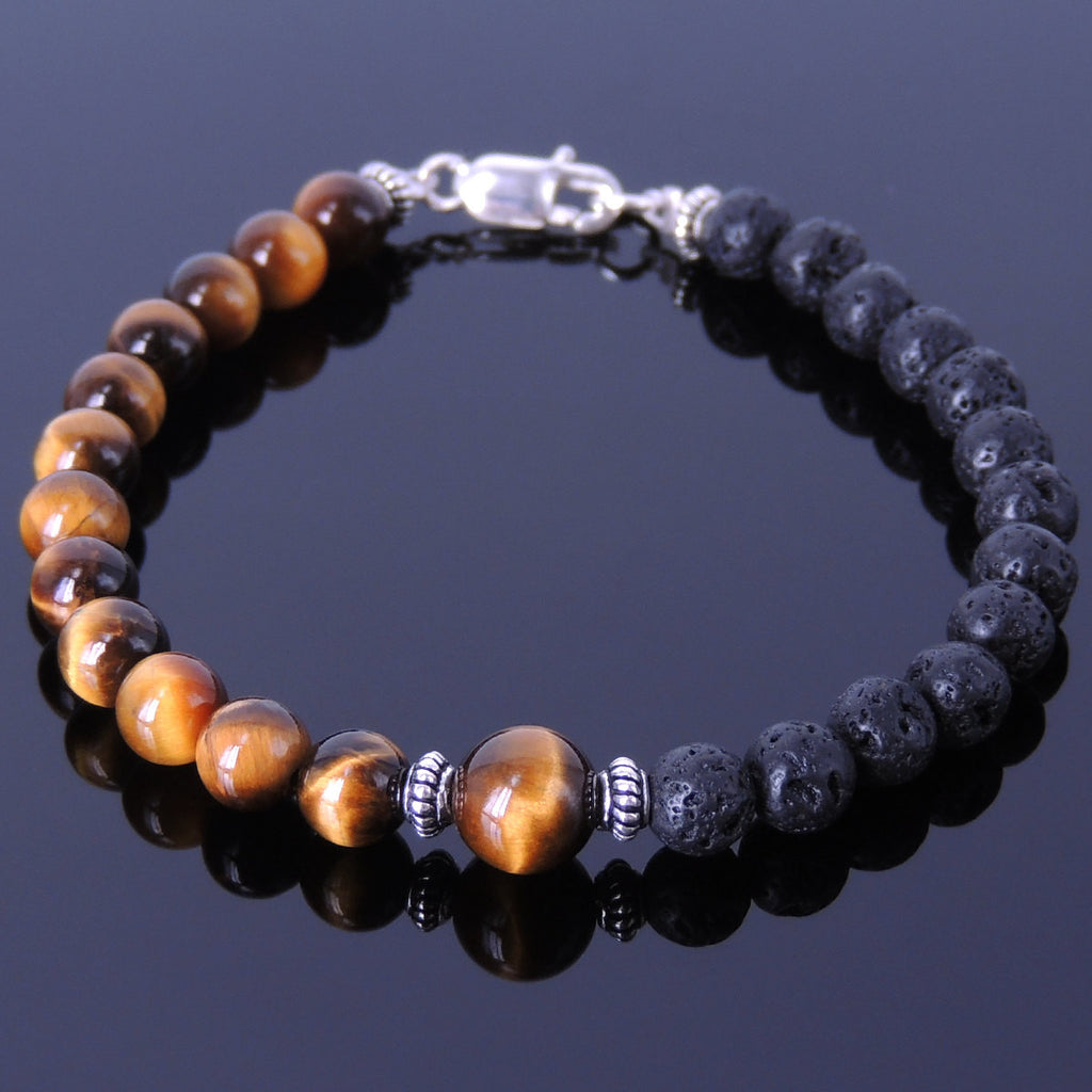 Men's Women Tiger Eye Lava Rock Sterling Silver Bracelet 925 Spacer & Clasp DiyNotion Handmade BR336