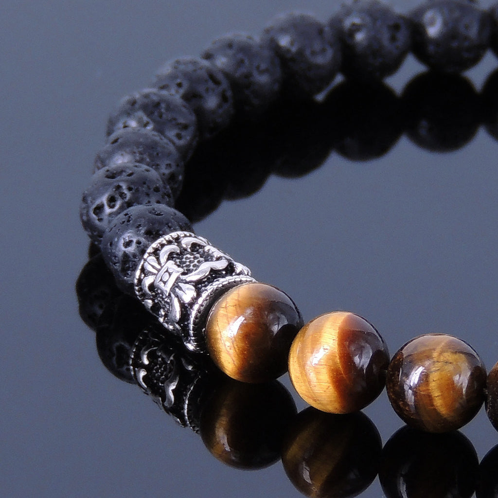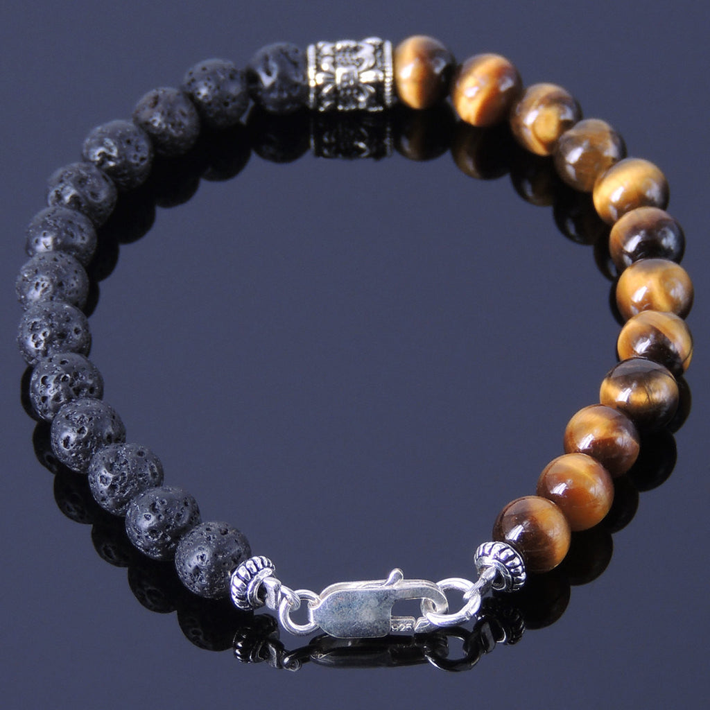 Materials: Gemstone,Lava Rock,Brown Tiger Eye,925 Sterling Silver