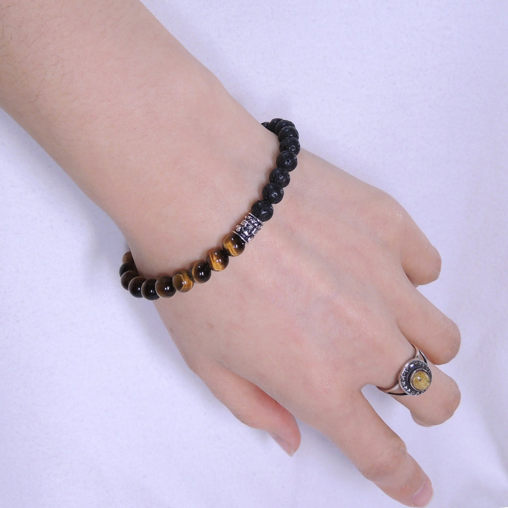 6mm Natural Brown Tiger Eye & 6mm Lava Rock