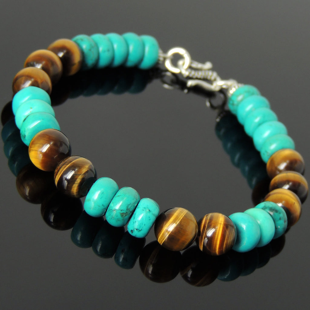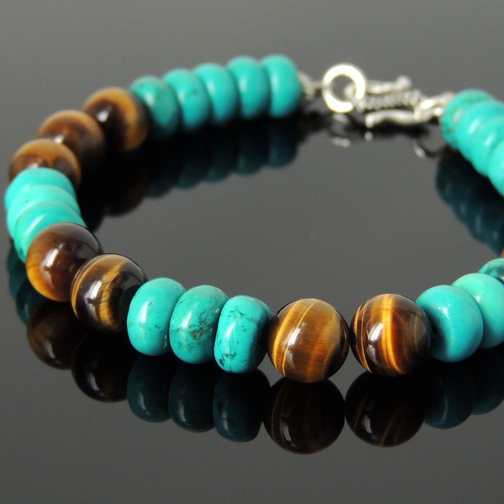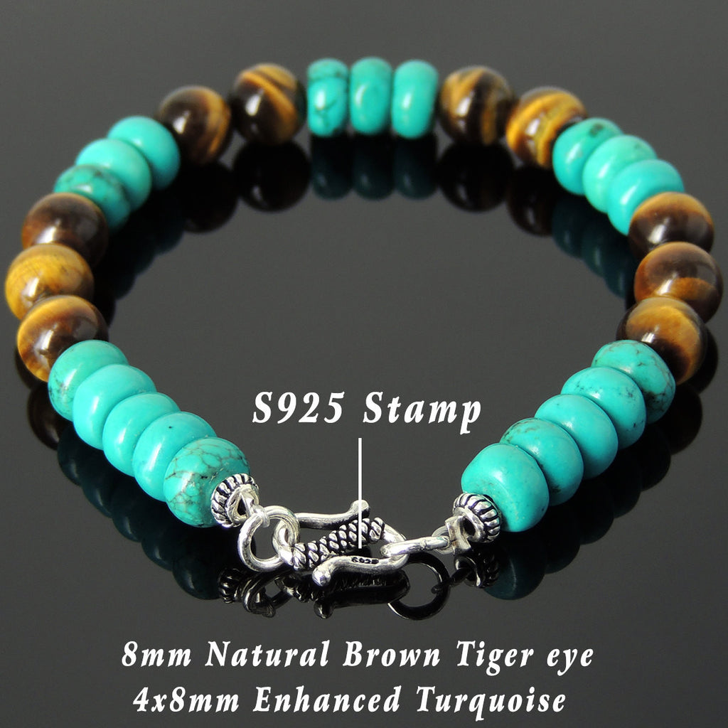 Men's Women Tiger Eye Turquoise Sterling Silver Bracelet 925 Clasp DiyNotion Handmade BR113