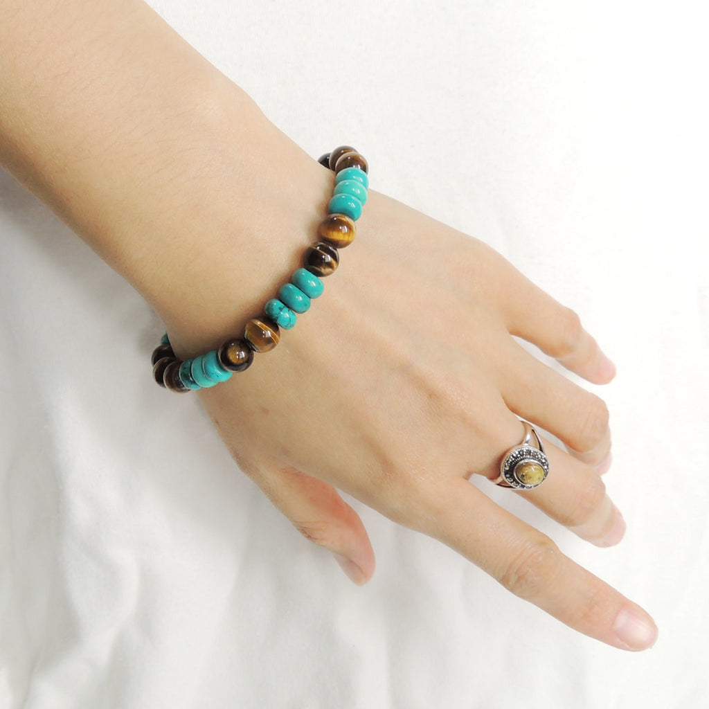 8mm Brown Tiger Eye & 4x7.5mm Enhanced Turquoise