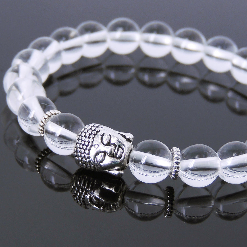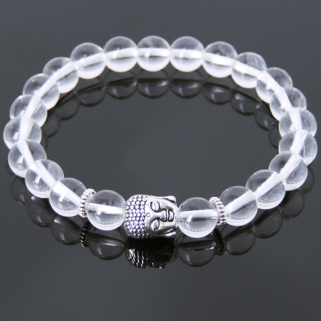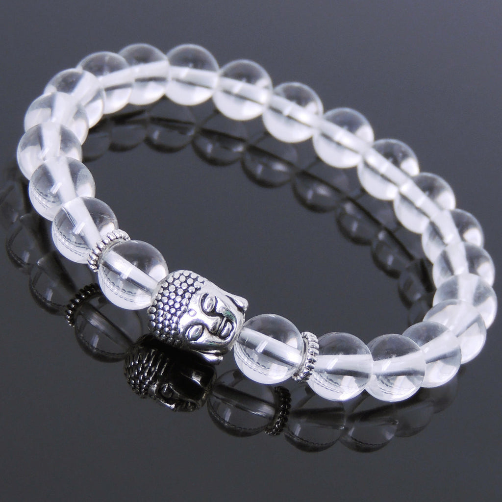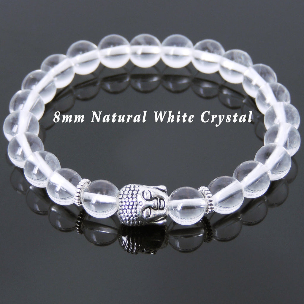 Men's Women White Crystal Tibetan Silver Bracelet Sakyamuni Buddha Yoga Mala DiyNotion Handmade T165
