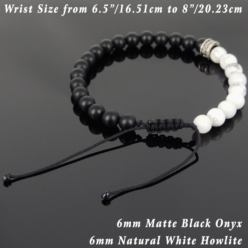 Materials: Gemstone,White Howlite,Matte Black Onyx,925 Sterling Silver,Chinese Strong Braided Cords