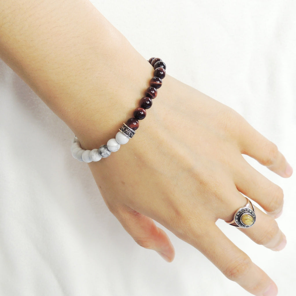 6mm Natural White Howlite & 6mm Natural Red Tiger Eye