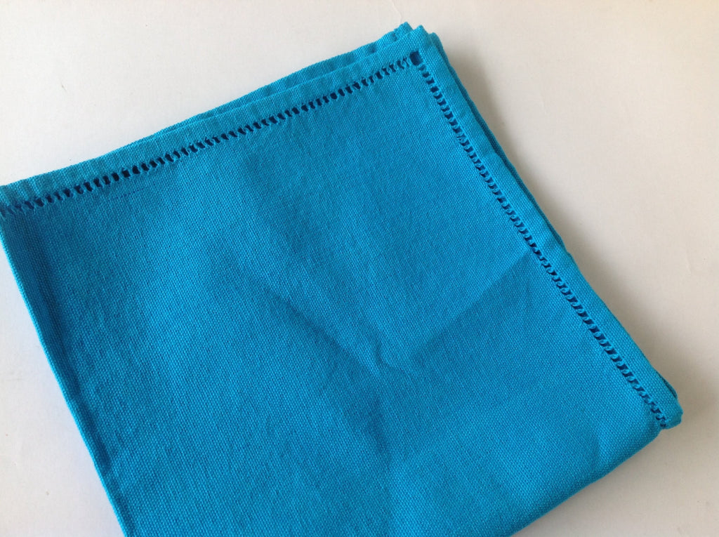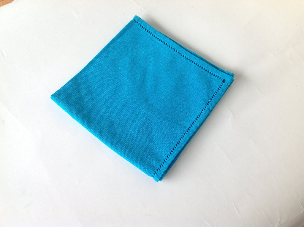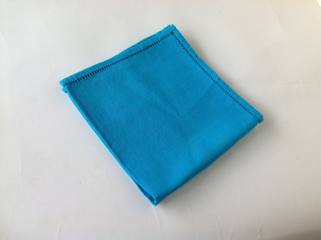 Elegant stylish four turquoise blue 100% cotton hand woven cotton hemstitched napkins are ideal to dress your dinner table.