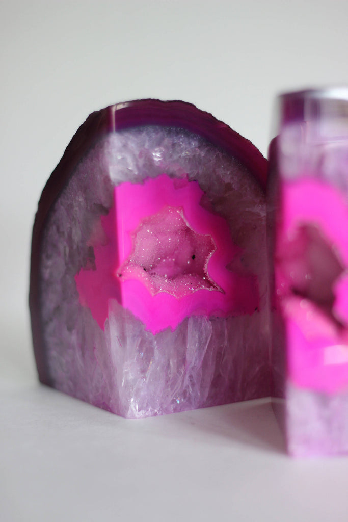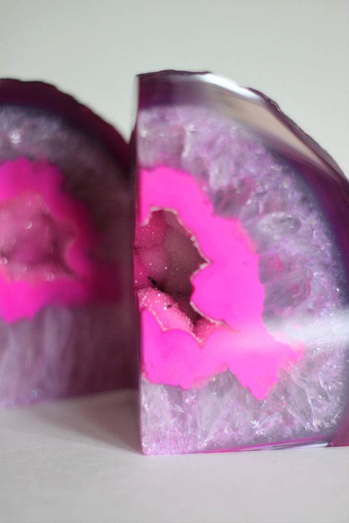 Offered are a pair of Extra Quality Large Agate Bookends in Pink, these are the exact pair you will receive.