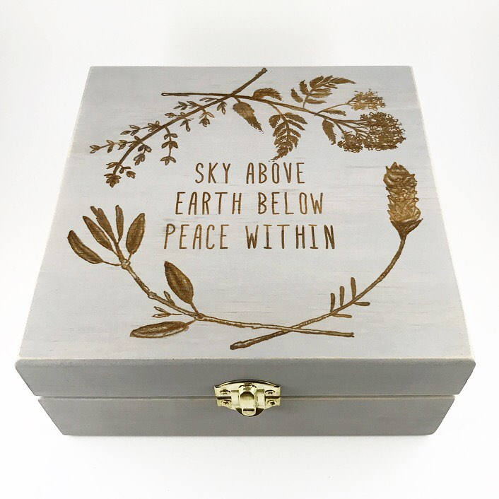 Once box is purchased, simply message the shop with request or detail of intended engravings. Black and White engraving proofs and font selection typically provided within 24 hours of purchase of a box. All boxes are completely unique. Wood grains can differ slightly from box to box guaranteeing no 2 boxes are identical.
