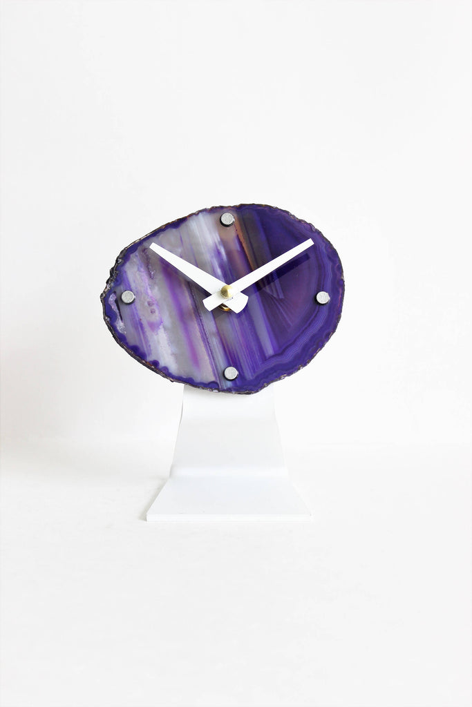 Materials: agate,agate slice,quartz,druzy,acrylic,chrome,silver,purple agate,purple geode,purple crystal,purple,purple clock,FREE SHIPPING