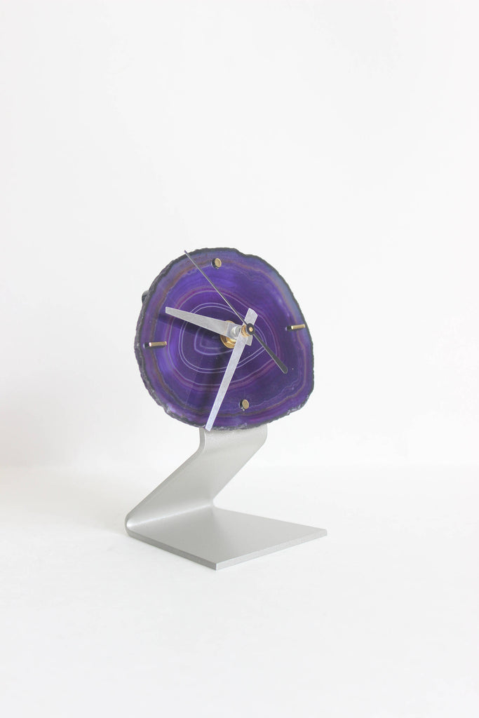 Materials: agate,agate slice,quartz,druzy,acrylic,chrome,silver,purple agate,purple geode,purple crystal,purple,purple clock,FREE SHIPPING