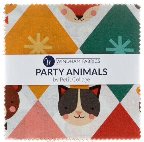 / SALE Party Animals Charm Pack by Petitcollage for Windham Fabrics - 42, 5 inch Precut Fabric Squares