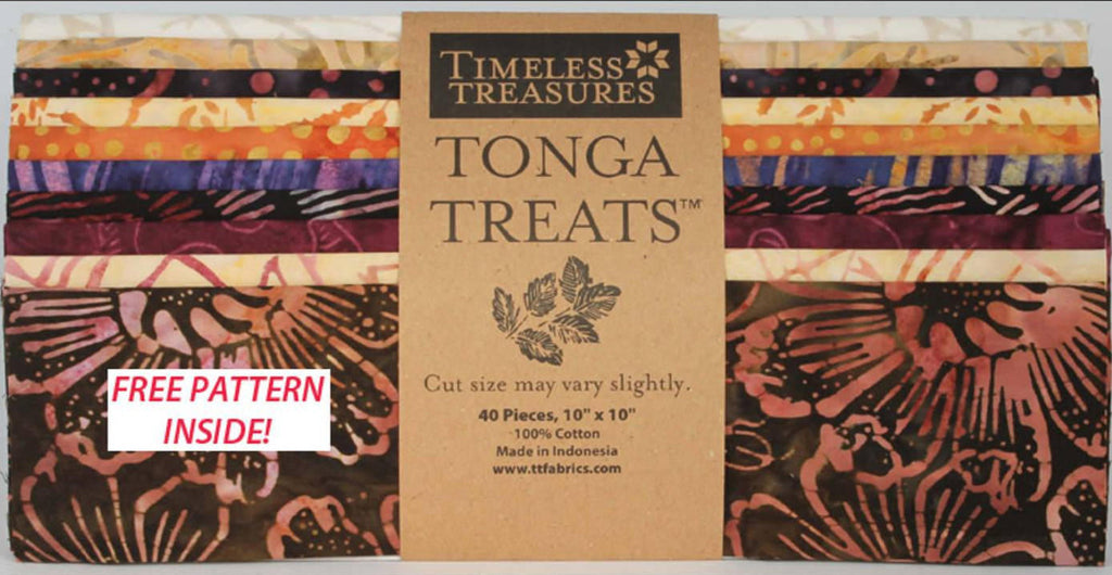 Tonga Treats Fig 10" Squares/Layer Cake By Timeless Treasures40 pieces in 10" x 10" cutsRich hues of plum and gold in Tonga Treats Fig stand out from the crowd! These Timeless Treasures pre-cuts are hand-dyed, hand-stamped fabric in a fall-inspired palette. Burnt orange, ebony, tan and rich blue back a variety of gorgeous batiks. This fabric is great for piecing quilts, aprons, bags, and much much more. 100% Cotton Fabrics.Images are a sample of the prints in this collection.All fabrics come from a smoke-free, pet-free environment.Texas residents please be aware that a state sales tax of 8.25% will be added on to your purchase.Please feel free to message me with any questions.