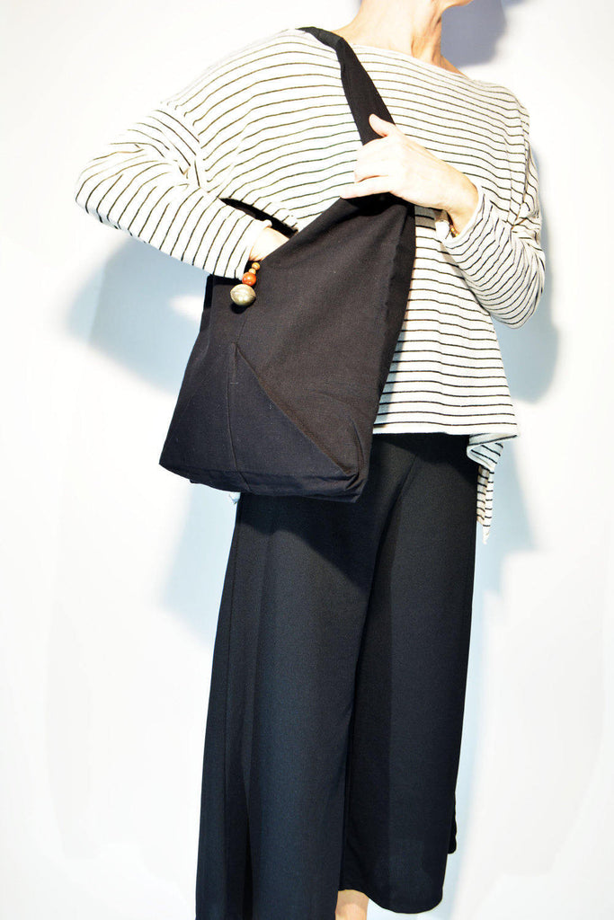 page title: Shoulder Bag Canvas Bag Black Tote Bag Hobo Bag Boho Bag Shoulder Bag