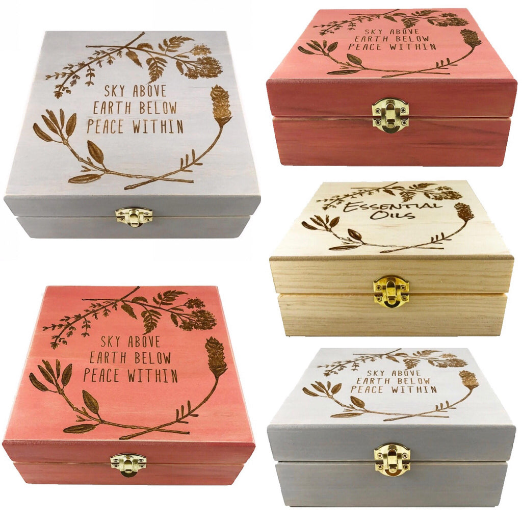 Sky Above Earth Below - Essential Oil Storage Box 25 Slot - 15mls - Pine - Choose Finish and Custom Laser Engravings - Fit dōTERRA Young Living, all 5ml-15ml bottles