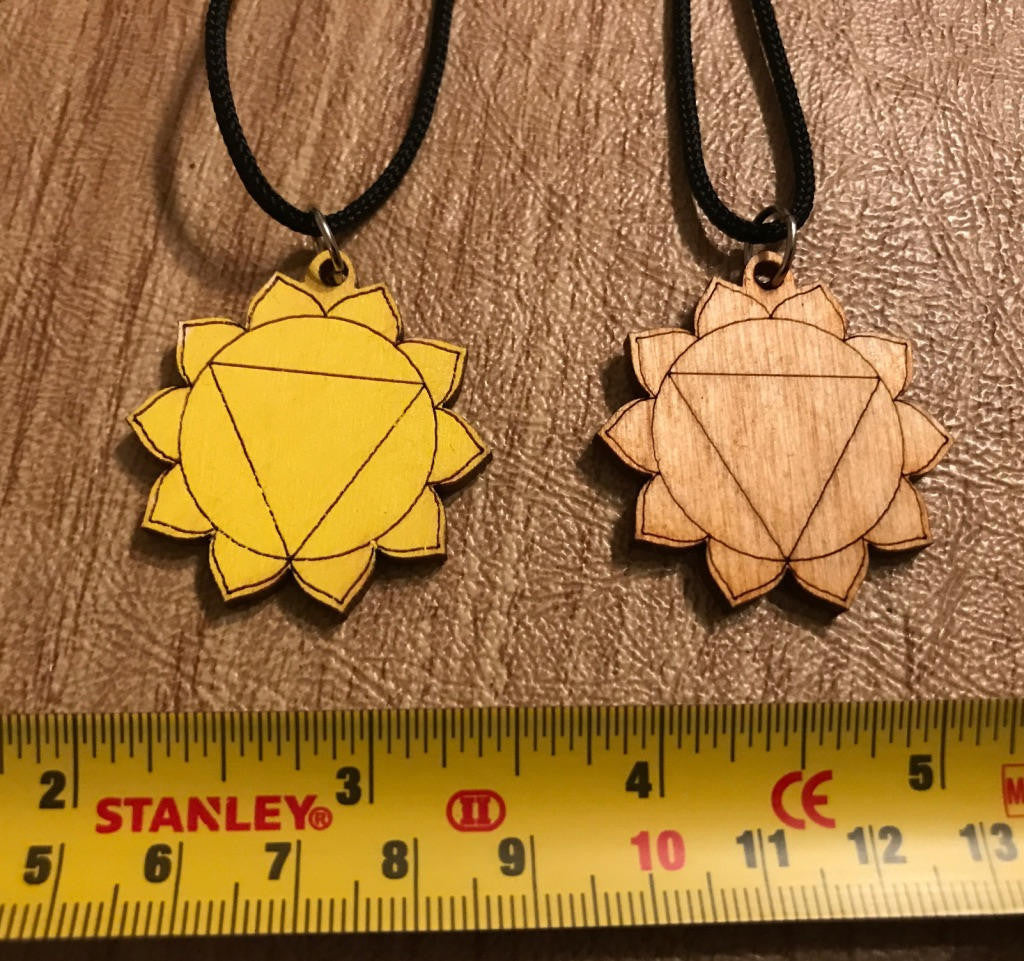 You may choose between yellow painted or natural stained. This is a wooden Solar Plexus Chakra Pendant with an adjustable parachord necklace. They are made out of birch wood. They made to order please allow up to 5 business days for production.