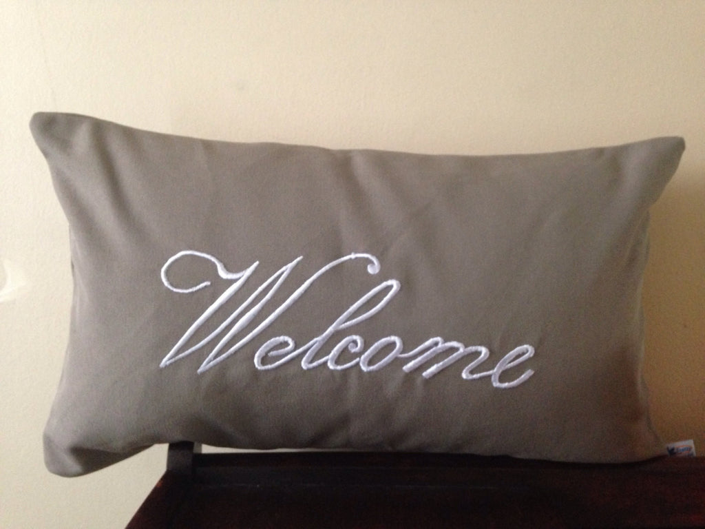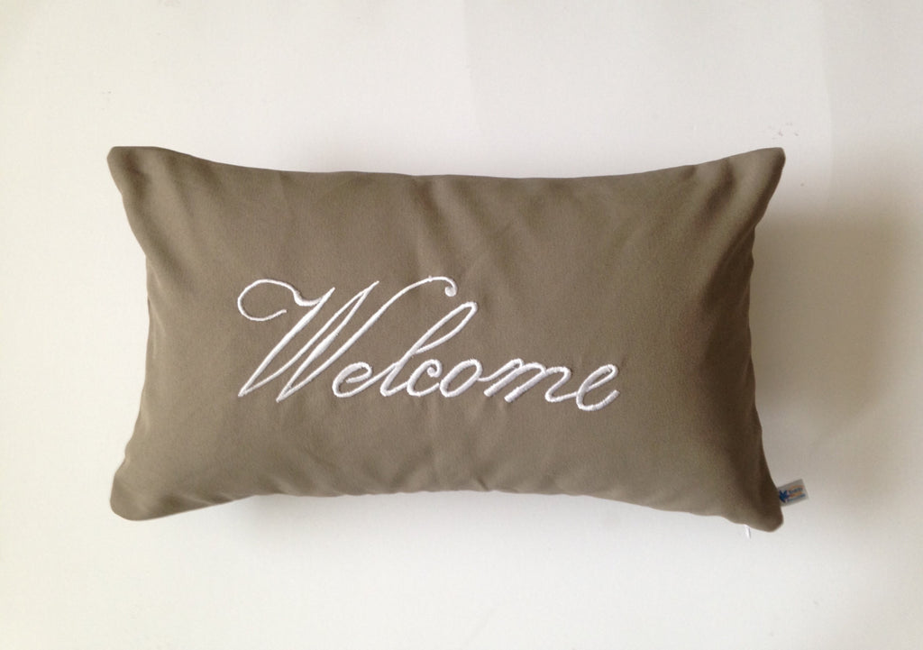 Spa Pillows, Outdoor porch12x20 lumbar pillow is a must have pillow for this spring. The word welcome is embroidered in the middle in white thread. Can give it as a housewarming gift, Spa throw pillow or simply would be an accent piece on the patio set or porch. You can custom name the word you like as well.