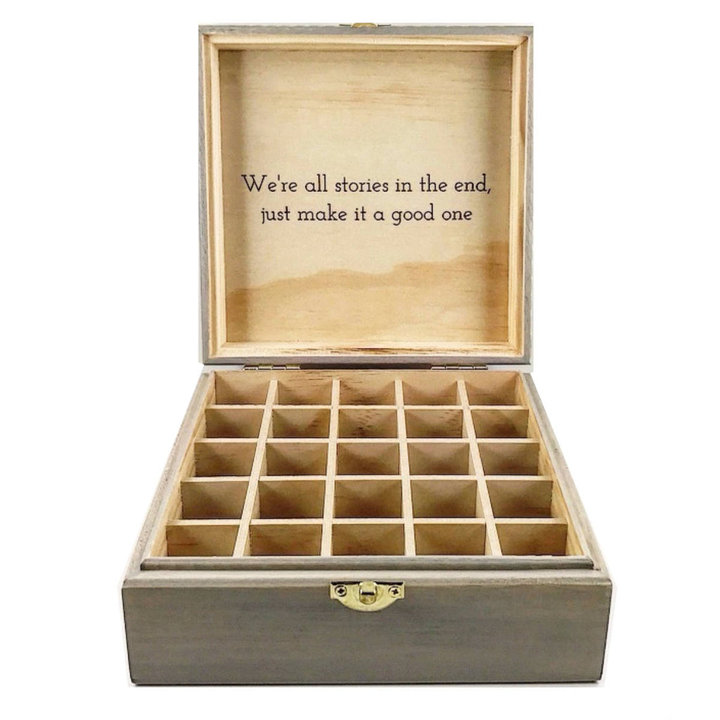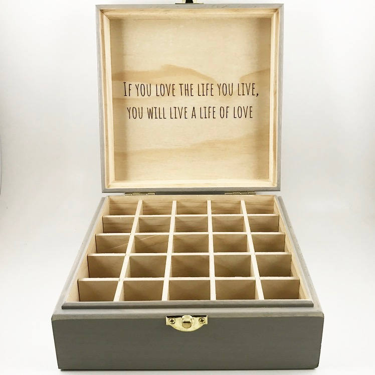 Materials: storage,herbal,lavender,pine,weathered gray,vintage aqua,coral,laser engraved,customizable,15ml,25 slot