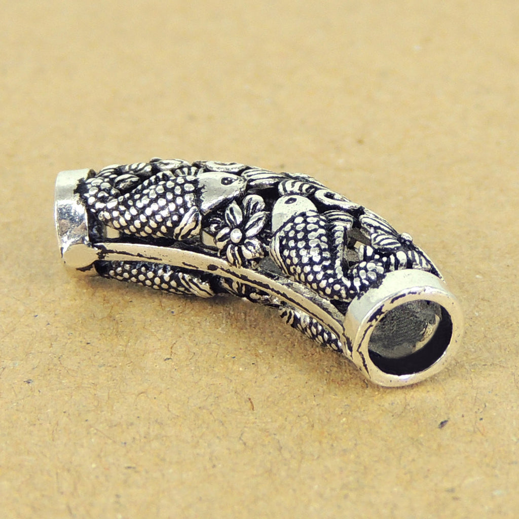 / Sterling Silver 925 Vintage Lotus Fish Charm WSP305 Wholesale: See Discount Coupons in Item Details