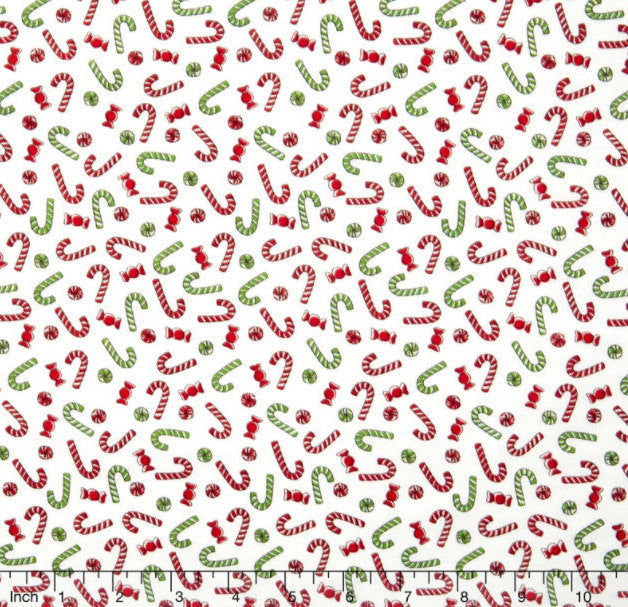 / Storybook Christmas Circa 1930's-Candy Canes & Peppermints White Yardage by Whistler for Windham Fabrics-Sold By 1/2 Yard and 1 Yard