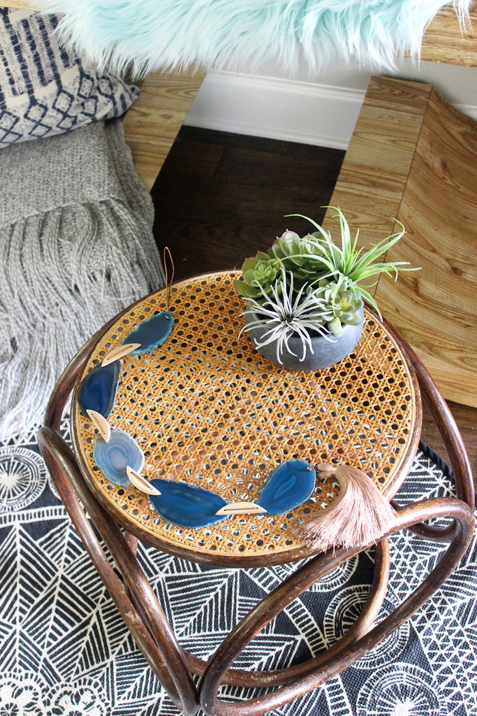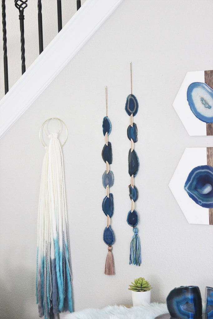 Offered is our Exclusive B o h o Agate Tassel Garland, a very versatile, unique and stunning piece! Hang on your wall for an accent, drape from your fireplace or window or use on your coffee table. For maximum eye candy, arrange with a couple of other sets in different colors for a one of a kind statement piece.