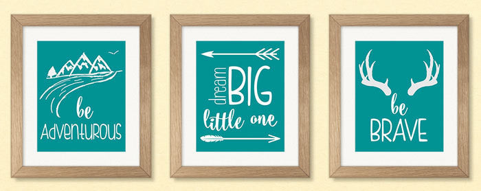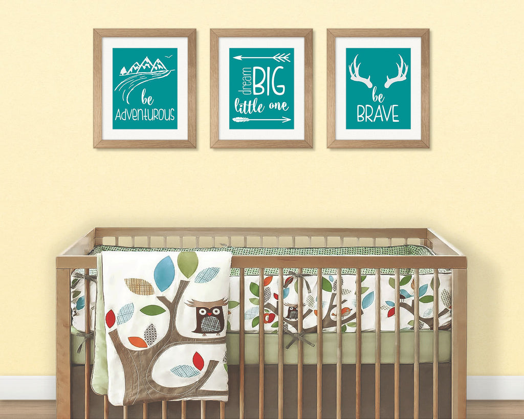 Teal Nursery Decor, Set of 3 Prints, Dream Big Little One, Be Brave, Printable Wall Art, INSTANT DOWNLOAD, Nursery Wall Art, Digital Print