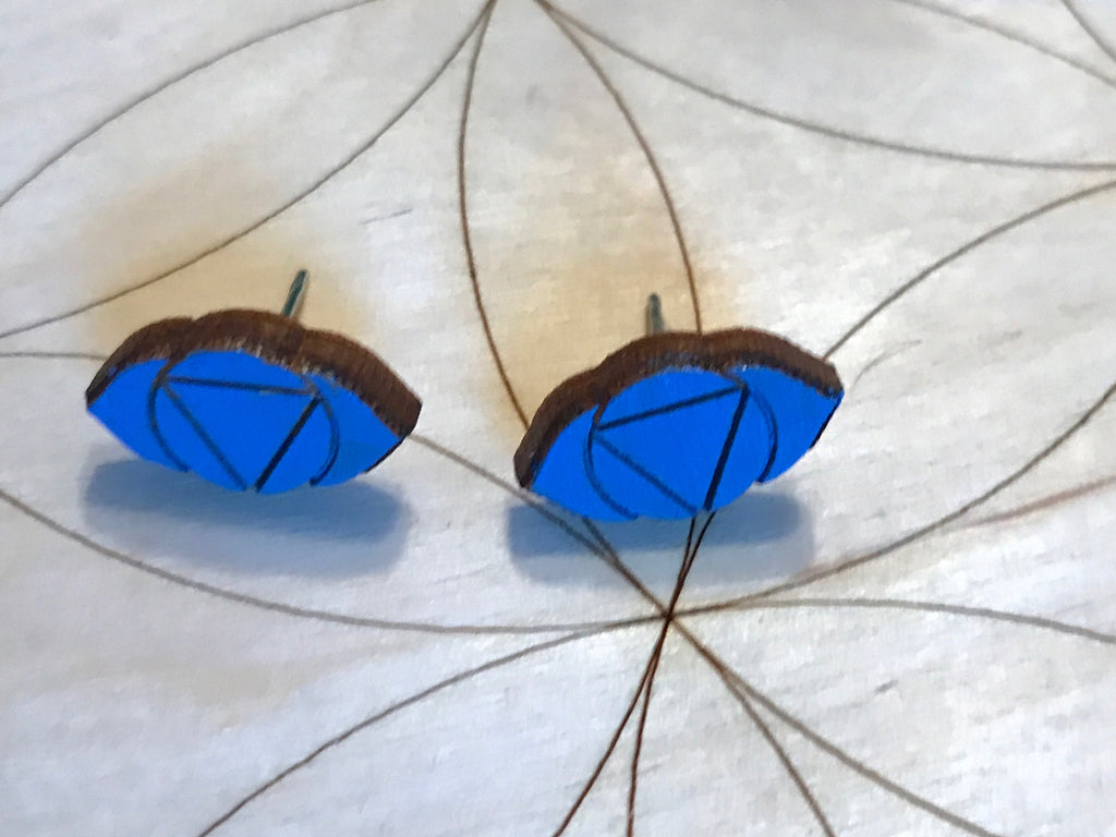 You may choose between blue painted or natural stained. These are cute wooden Third Eye chakra earrings. The posts and backs are nickel free. They are made out of birch wood. These earrings are made to order please allow up to 5 business days for production.Ajna, or third-eye chakra, is the sixth primary chakra in the body according to Hindu tradition. It is a part of the brain which can be made more powerful through meditation, yoga & other spiritual practices just as a muscle is.Physical location: Between the eyebrows, behind the foreheadOrgans associated: Eye, Brain, Pineal gland, Pituitary gland, Nervous system, EarYoga poses (strengthening the chakra): B€l€sana, Janusirsasana, Ardha Pincha MayurasanaColour associated: IndigoMantra associated: AUMEssential oils: Vetiver, Rosemary, Angelic root, Frankincense, More