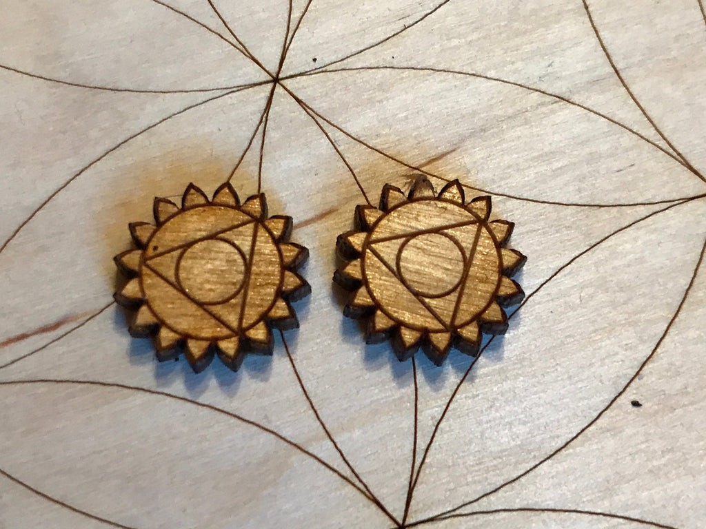 You may choose between blue painted or natural stained. These are cute wooden Throat Chakra earrings. The posts and backs are nickel free. They are made out of birch wood. These earrings are made to order please allow up to 5 business days for production.
