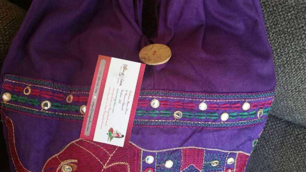 Purple and Pink Elephant Embroidery bag
