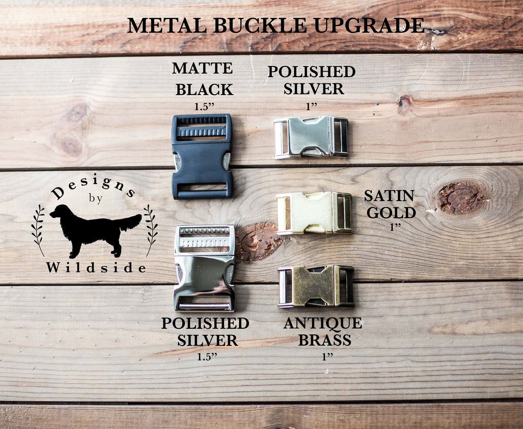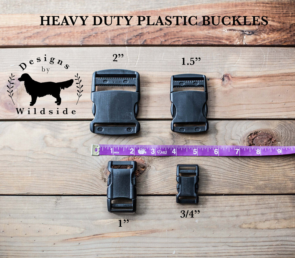✪ Collar Measurement ✪ Please note that the buckle will be slightly bigger vs. the webbing (actual collar ) If you order a 1” collar the buckle measurement will be a few cm’s bigger where the buckles meets and close. The fabric part of it will be 1” but the buckle will be slightly bigger- please keep that in mind when ordering.