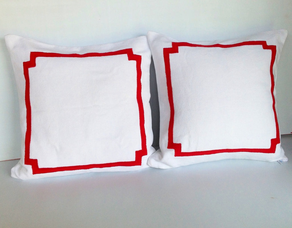Set of throw pillow covers give a classic touch to your bedroom or any other living space in your house. Pillow is appliquǸd with a notched border around the pillow. Border pillow cover is very versatile and can be added with a monogram cushion cover as well. 24 inch throw pillow cover is made with 100% woven cotton and invisible zip at the bottom.