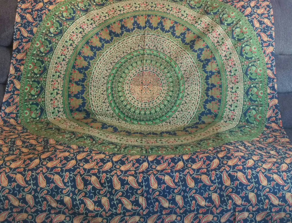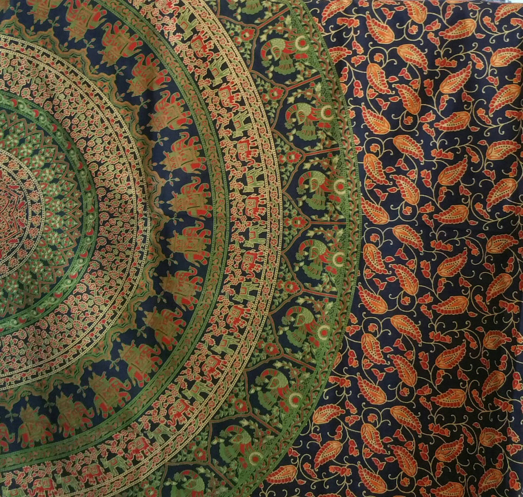 Mandala means 'Circle' in Sanskrit. The intricate and precise Mandala Pattern on this tapestry adds beauty to your living space. Like most of Rangeelaa's products these tapestries are versatile.They can be used as Dining Table Cover, Meditation Mat, Couch Throw, wall tapestry or a Beach throw. They are made with a thin Cotton fabric which is easy to wash.